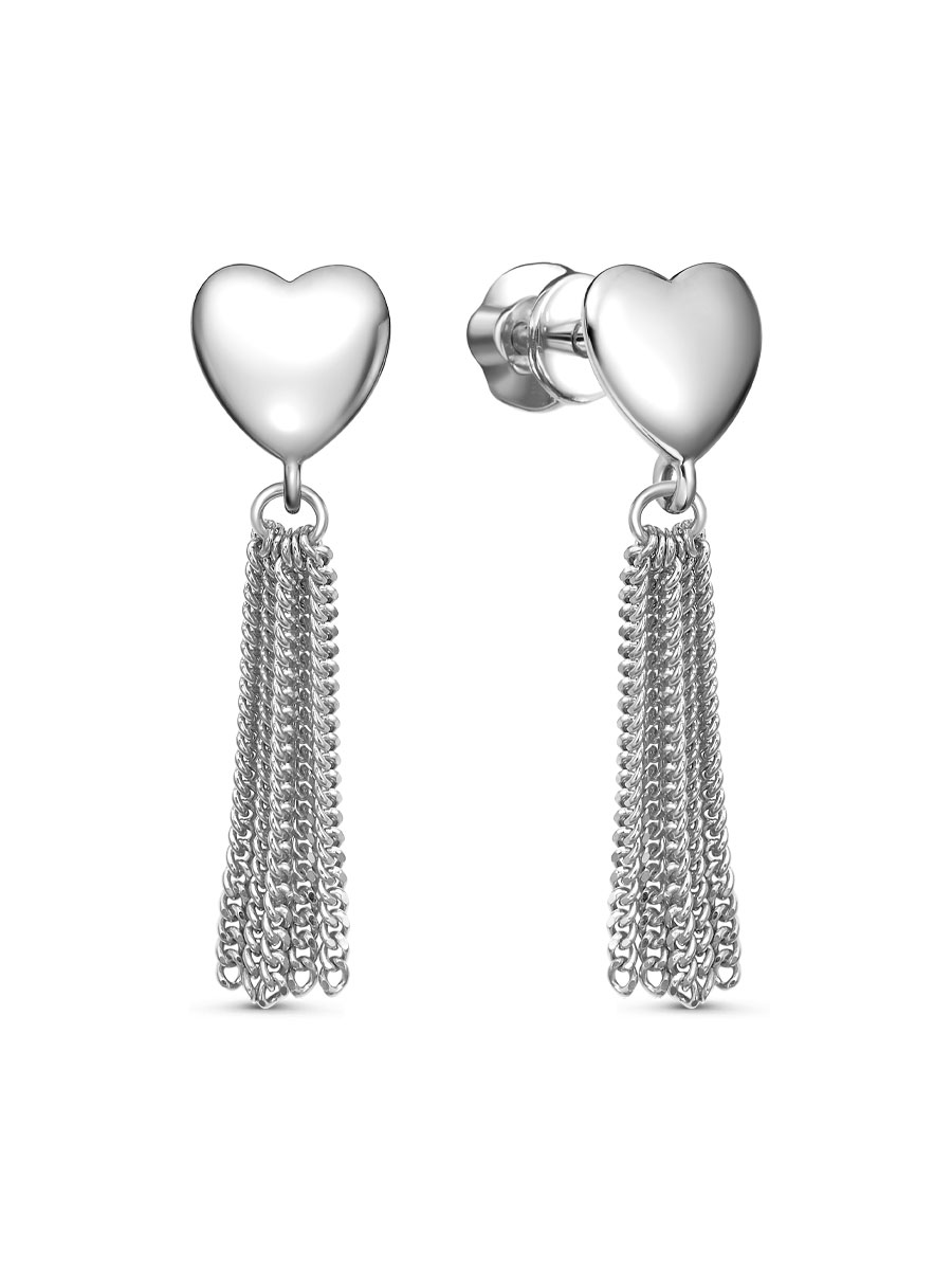 Серьги выполнены из серебра 925 пробы с родиевым покрытием. Характеристики. Общая высота серьги 31 мм. Высота сердца 7,5 мм, ширина 7,5 мм. Количество цепочек 5 шт. Длина одной цепочки 21 мм, толщина 1,3 мм. Рабочая зона штифта 5 мм. Толщина штифта 1,2 мм. Берегите изделие от воздействия влаги, любых спиртосодержащих растворов и жидкостей, а также парфюма. Для ухода и чистки желательно использовать специальные салфетки для серебра. Приятным дополнением к ювелирному украшению является фирменная упаковка. Значение веса и габаритов в характеристиках примерные и могут отличаться от фактических.