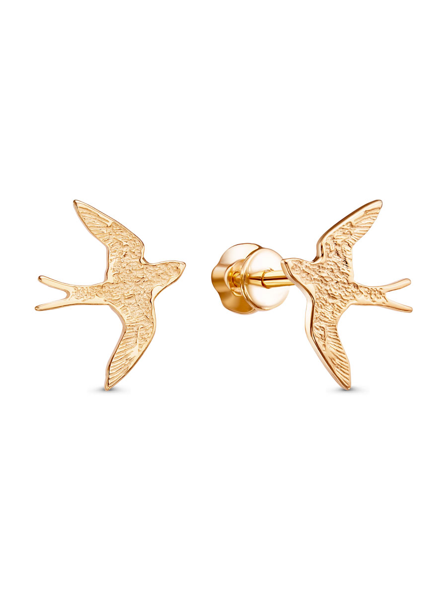 Серьги выполнены из серебра 925 пробы с золотым покрытием. Характеристики. Высота серьги от крыла до крыла 14,2 мм, ширина от клюва до хвоста 11,7 мм, глубина 0,9 мм. Замок винтовой. Толщина штифта 1,1 мм. Рабочая зона штифта 5 мм. Отличным дополнением к пусетам будет брошь арт. 6-00-656-00з. Берегите изделие от воздействия влаги, любых спиртосодержащих растворов и жидкостей, а также парфюма. Для ухода и чистки желательно использовать специальные салфетки для серебра. Приятным дополнением к ювелирному украшению является фирменная упаковка. Значение веса и габаритов в характеристиках примерные и могут отличаться от фактических.