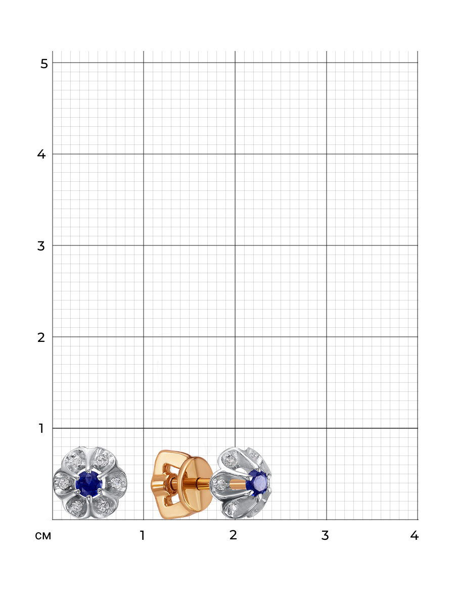 Серьги пусеты из серебра 925 с сапфиром гидротермальным