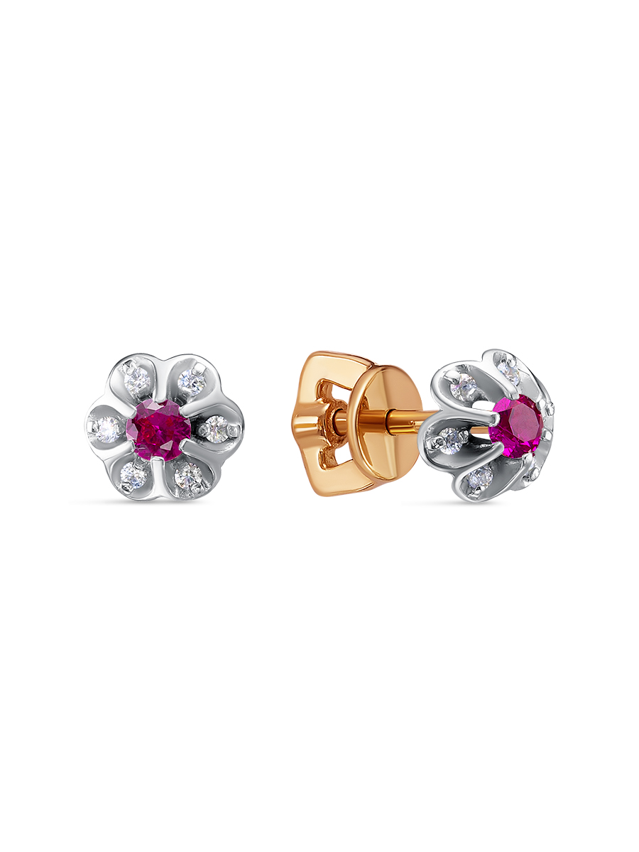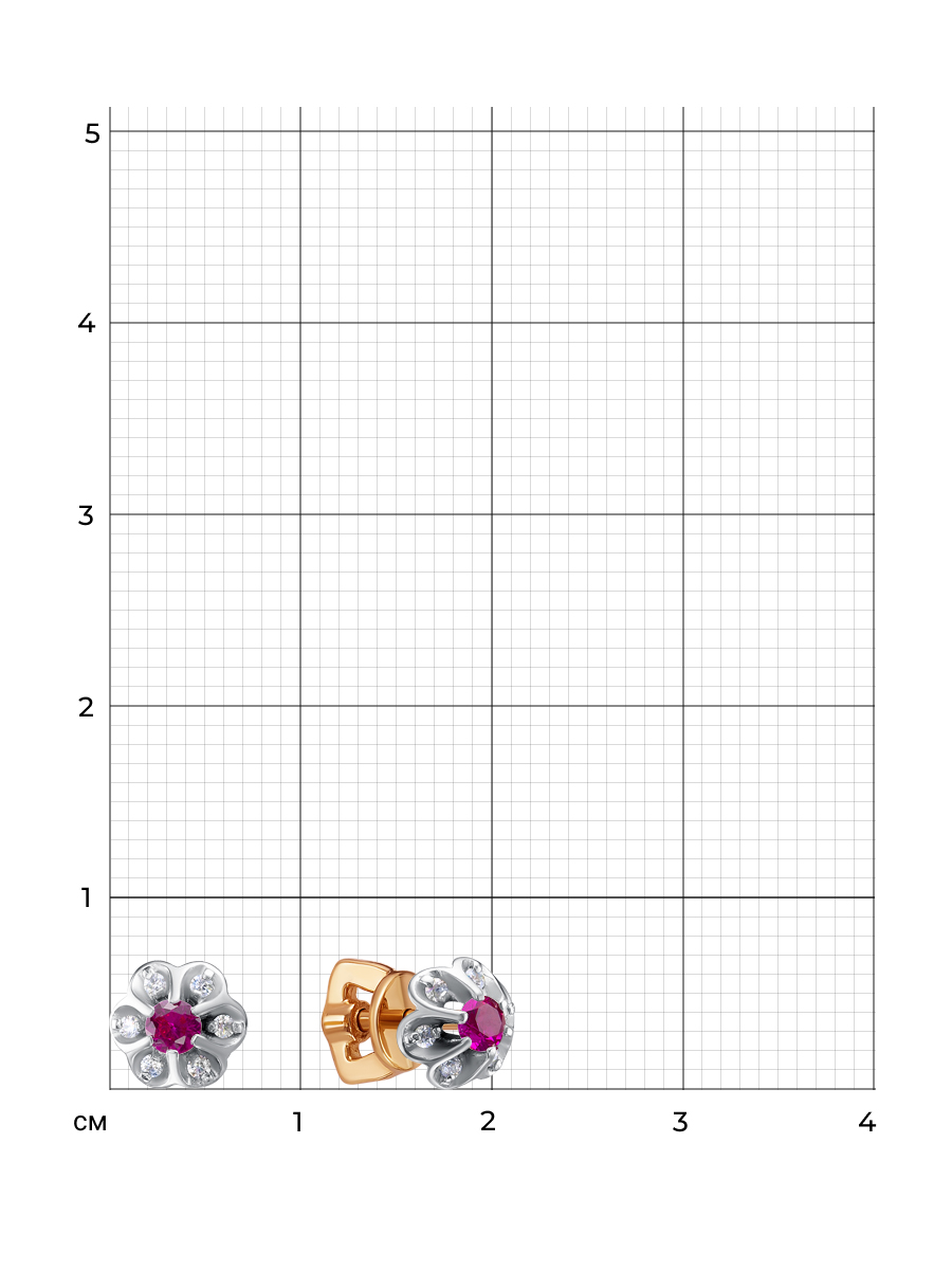 Пусеты Цветок с гидротермальными рубинами выполнены из серебра 925 пробы с родиевым и золотым покрытием. Характеристики. Вставка 2 рубина корунда 3мм огранка круг, 6 недрагоценных бесцветных фианитов 1,25мм огранка круг. Диаметр цветка 8мм. Рабочая зона штифта 4мм. Замок винтовой. Берегите изделие от воздействия влаги, любых спиртосодержащих растворов и жидкостей, а также парфюма. Для ухода и чистки желательно использовать специальные салфетки для серебра. Приятным дополнением к ювелирному украшению является фирменная упаковка. Значение веса в характеристиках является примерным и может отличаться от фактического.
