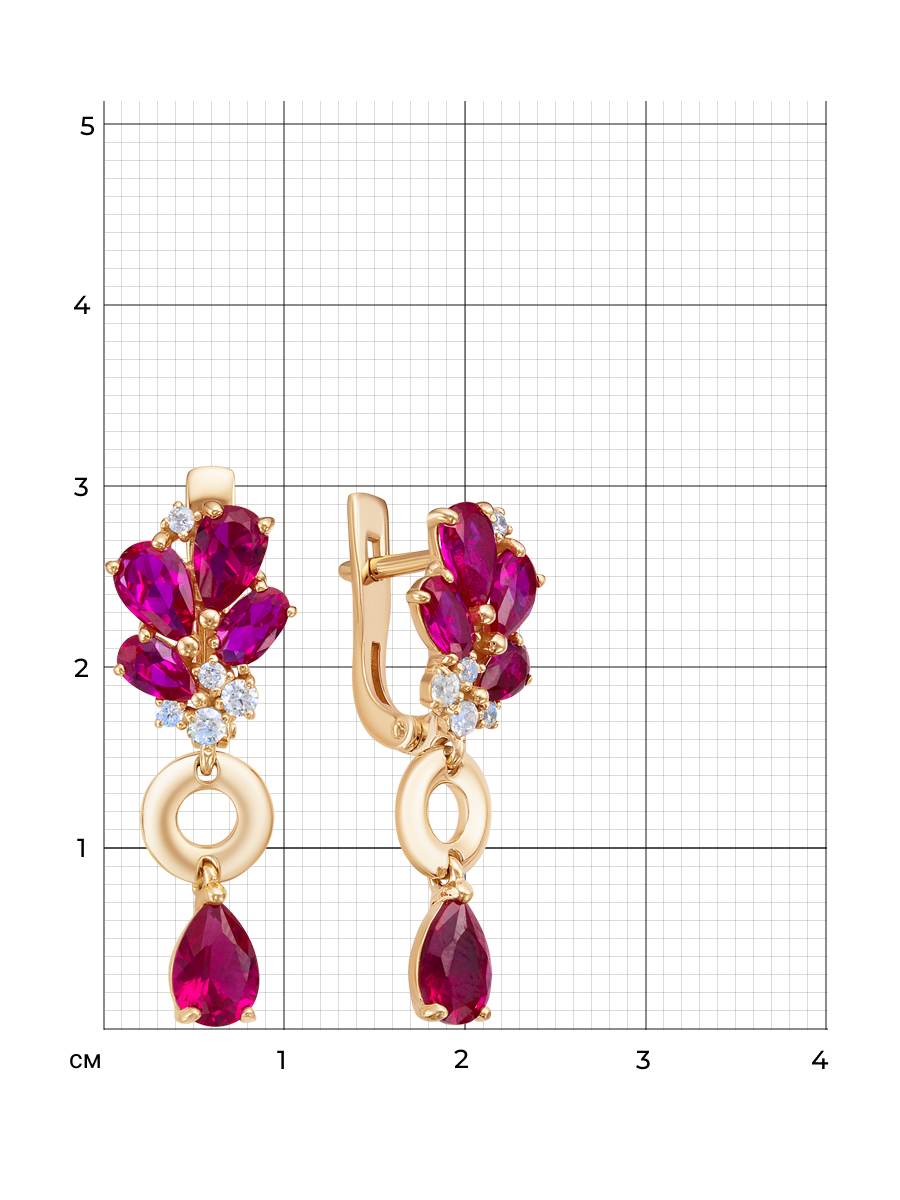 Серьги выполнены из серебра 925 пробы с золотым покрытием. Характеристики. Вставка 6 недрагоценных бесцветных фианитов 1,5мм огранка круг, 4 недрагоценных бесцветных фианита 2мм огранка круг, 2 корунд рубина 5х3мм цвет красный огранка груша, 4 корунд рубина 6х4мм цвет красный огранка груша. Общая высота серьги 29мм, ширина 10,5мм, высота подвесной части 15,5мм, ширина 7,5мм. Рабочая зона штифта 7мм, размер занижения штифта 2мм. Отличным дополнением к серьгам будут браслет арт.4-03-116-02з и колье арт.5-03-116-02з. Берегите изделие от воздействия влаги, любых спиртосодержащих растворов и жидкостей, а также парфюма. Для ухода и чистки желательно использовать специальные салфетки для серебра. Приятным дополнением к ювелирному украшению является фирменная упаковка. Значение веса в характеристиках примерное и может отличаться от фактического.