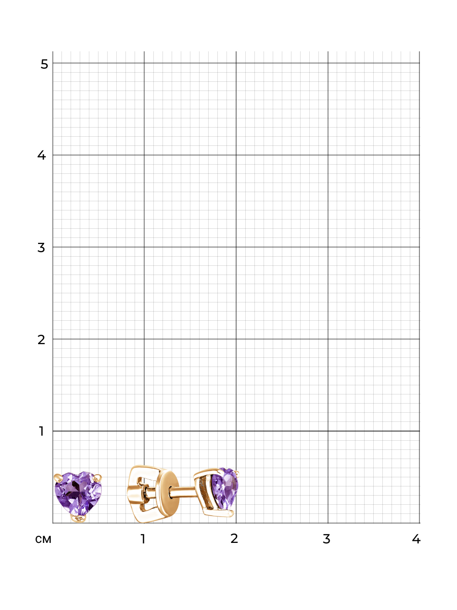 Нежные пусеты с натуральными аметистами выполнены из серебра 925 пробы с золотым покрытием. Характеристики. Вставка 2 натуральных аметиста 5х5мм цвет фиолетовый огранка сердце. Высота серьги 5,5мм, ширина 5,5мм, глубина вместе с камнем 4мм. Рабочая зона штифта 4,5мм. Отличным дополнением к пусетам будут кольцо арт.1-04-008-13з и подвеска 3-04-008-13з. Берегите изделие от воздействия влаги, любых спиртосодержащих растворов и жидкостей, а также парфюма. Для ухода и чистки желательно использовать специальные салфетки для серебра. Приятным дополнением к ювелирному украшению является фирменная упаковка. Значение веса и габаритов в характеристиках являются примерными и могут отличаться от фактических.