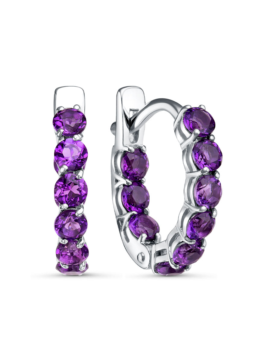 Серьги выполнены из серебра 925 пробы с родиевым покрытием. Характеристики. Вставка 18 натуральных аметистов 3 мм цвет фиолетовый огранка круг. Высота серьги 15,5 мм, ширина 3 мм, глубина 15 мм. Рабочая зона штифта 7,5 мм. Отличным дополнением к серьгам будет кольцо арт.1-04-060-13р. Берегите изделие от воздействия влаги, любых спиртосодержащих растворов и жидкостей, а также парфюма. Для ухода и чистки желательно использовать специальные салфетки для серебра. Приятным дополнением к ювелирному украшению является фирменная упаковка. Значение веса и габаритов в характеристиках примерные и могут отличаться от фактических.