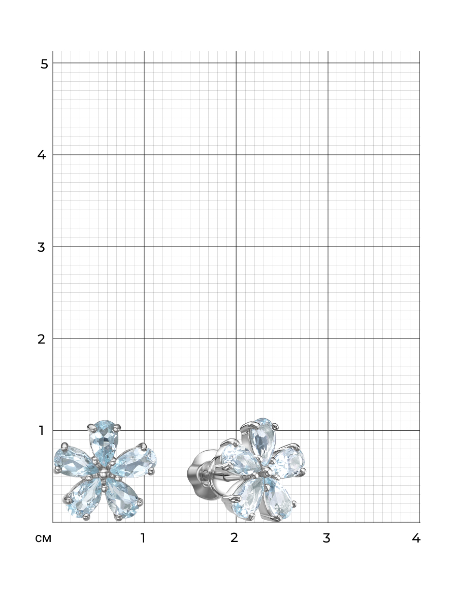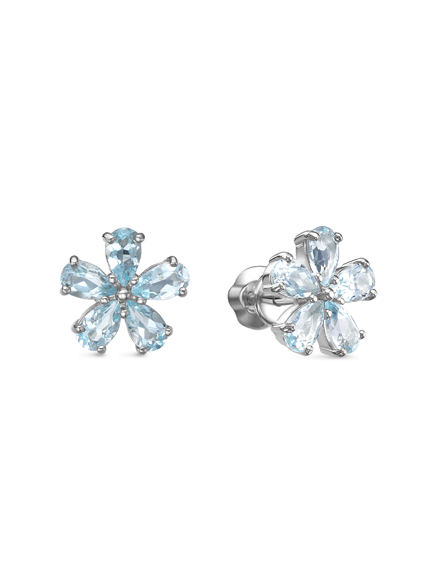 Серьги пусеты из серебра 925 пробы с родиевым покрытием. Характеристики. Вставка 10 натуральных топазов 5х3мм цвет Скай огранка груша. Диаметр серьги 11мм, глубина 3мм. Замок винтовой. Рабочая зона штифта 4,6мм. Берегите изделие от воздействия влаги, любых спиртосодержащих растворов и жидкостей, а также парфюма. Для ухода и чистки желательно использовать специальные салфетки для серебра. Приятным дополнением к ювелирному украшению является фирменная упаковка. Значение веса и габаритов в характеристиках примерные и могут отличаться от фактических.
