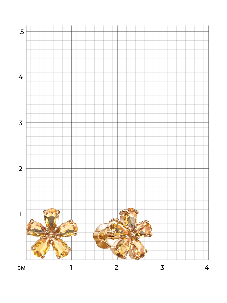 Серьги пусеты из серебра 925 пробы с золотым покрытием. Характеристики. Вставка 10 натуральных цитринов 5х3мм цвет жёлтый огранка груша. Диаметр серьги 11мм, глубина 3мм. Замок винтовой. Рабочая зона штифта 4,6мм. Берегите изделие от воздействия влаги, любых спиртосодержащих растворов и жидкостей, а также парфюма. Для ухода и чистки желательно использовать специальные салфетки для серебра. Приятным дополнением к ювелирному украшению является фирменная упаковка. Значение веса и габаритов в характеристиках примерные и могут отличаться от фактических.