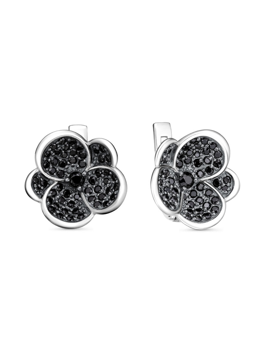 Серьги выполнены из серебра 925 пробы с родиевым покрытием. Характеристики. Вставка 2 натуральных шпинели 2,5 мм цвет чёрный огранка круг, 92 натуральных шпинели 1,25 мм цвет чёрный огранка круг, 12 натуральных шпинелей 1 мм цвет чёрный огранка круг. Высота серьги 14,2 мм, ширина 14,5 мм. Замок английский. Рабочая зона штифта 6 мм, размер занижения штифта 2 мм. Отличным дополнением к серьгам будет кольцо арт. 1-04-208-11р. Берегите изделие от воздействия влаги, любых спиртосодержащих растворов и жидкостей, а также парфюма. Для ухода и чистки желательно использовать специальные салфетки для серебра. Приятным дополнением к ювелирному украшению является фирменная упаковка. Значение веса и габаритов в характеристиках примерные и могут отличаться от фактических.