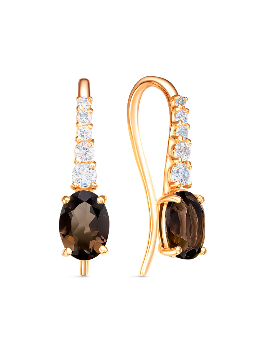Серьги с натуральными агатами выполнены из серебра 925 пробы с золотым покрытием. Характеристики. Вставка 2 натуральных раухтопаза 7х5 мм огранка овал, 2 недрагоценных бесцветных фианита 1,25 мм огранка круг, 4 недрагоценных бесцветных фианита 1,5 мм огранка круг, 2 недрагоценных бесцветных фианита 2 мм огранка круг, 2 недрагоценных бесцветных фианита 2,5 мм огранка круг. Высота серьги 18 мм, ширина 5 мм. Внутренний радиус петли 5,5 мм. Берегите изделие от воздействия влаги, любых спиртосодержащих растворов и жидкостей, а также парфюма. Для ухода и чистки желательно использовать специальные салфетки для серебра. Приятным дополнением к ювелирному украшению является фирменная упаковка. Значение веса и габаритов в характеристиках примерные и могут отличаться от фактических.