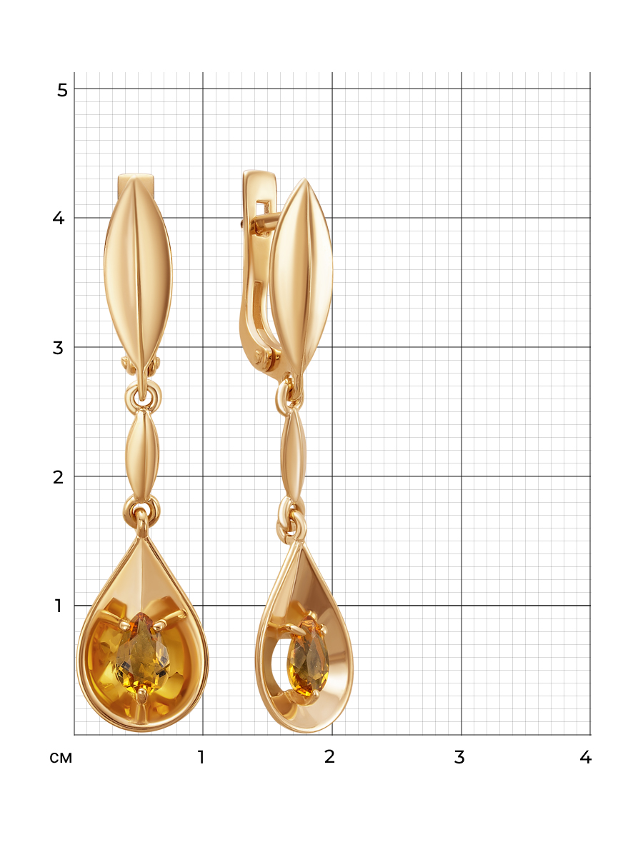 Серьги выполнены из серебра 925 пробы с золотым покрытием. Характеристики. Вставка 2 натуральных цитрина 6х4мм цвет жёлтый огранка груша. Высота серьги 43мм, высота подвесной части 27мм, ширина 10мм. Рабочая зона штифта 7мм, размер занижения штифта 2мм. Отличным дополнением к серьгам будет подвеска арт.3-04-322-34з. Берегите изделие от воздействия влаги, любых спиртосодержащих растворов и жидкостей, а также парфюма. Для ухода и чистки желательно использовать специальные салфетки для серебра. Приятным дополнением к украшению является фирменная упаковка. Значение веса и габаритов в характеристиках являются примерными и могут отличаться от фактических.