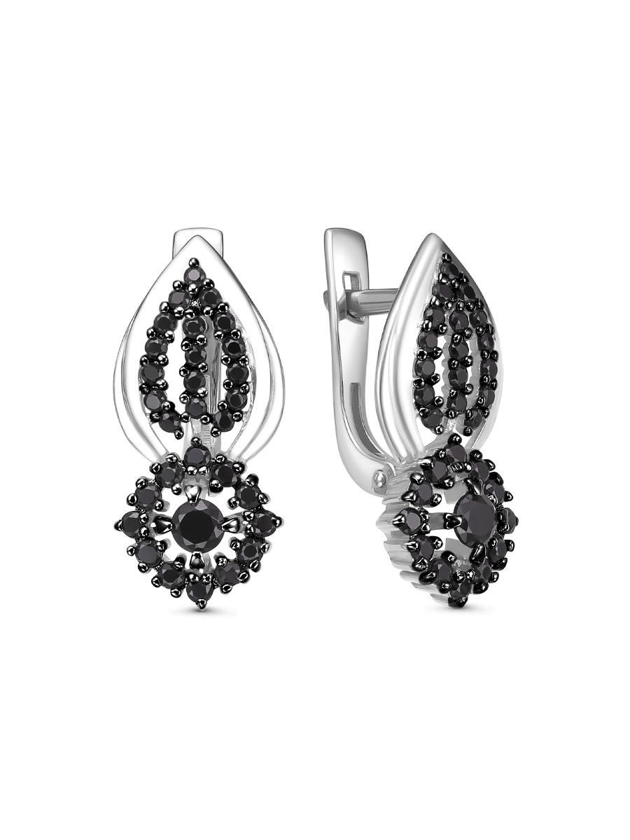 Серьги выполнены из серебра 925 пробы с родиевым покрытием. Характеристики. Вставка 2 натуральных шпинели 3 мм цвет чёрный огранка круг, 24 натуральных шпинели 1,5 цвет чёрный огранка круг, 34 натуральных шпинели 1,25 мм цвет чёрный огранка круг. Высота серьги 20,5 мм, ширина 9,5 мм. Рабочая зона штифта 6 мм, размер занижения штифта 3 мм. Отличным дополнением к серьгам будет кольцо арт. 1-04-326-11з. Берегите изделие от воздействия влаги, любых спиртосодержащих растворов и жидкостей, а также парфюма. Для ухода и чистки желательно использовать специальные салфетки для серебра. Приятным дополнением к ювелирному украшению является фирменная упаковка. Значения веса и габаритов в характеристиках примерные и могут отличаться от фактических.