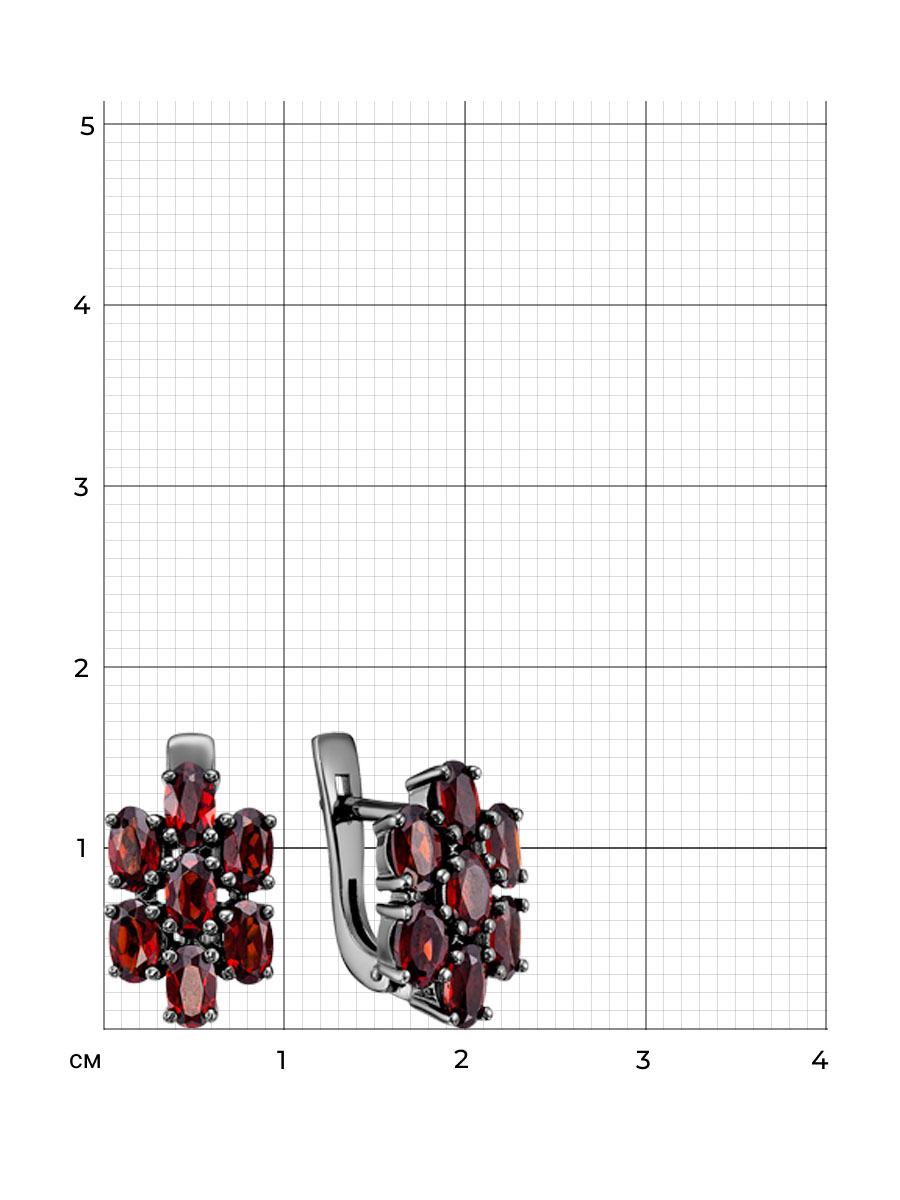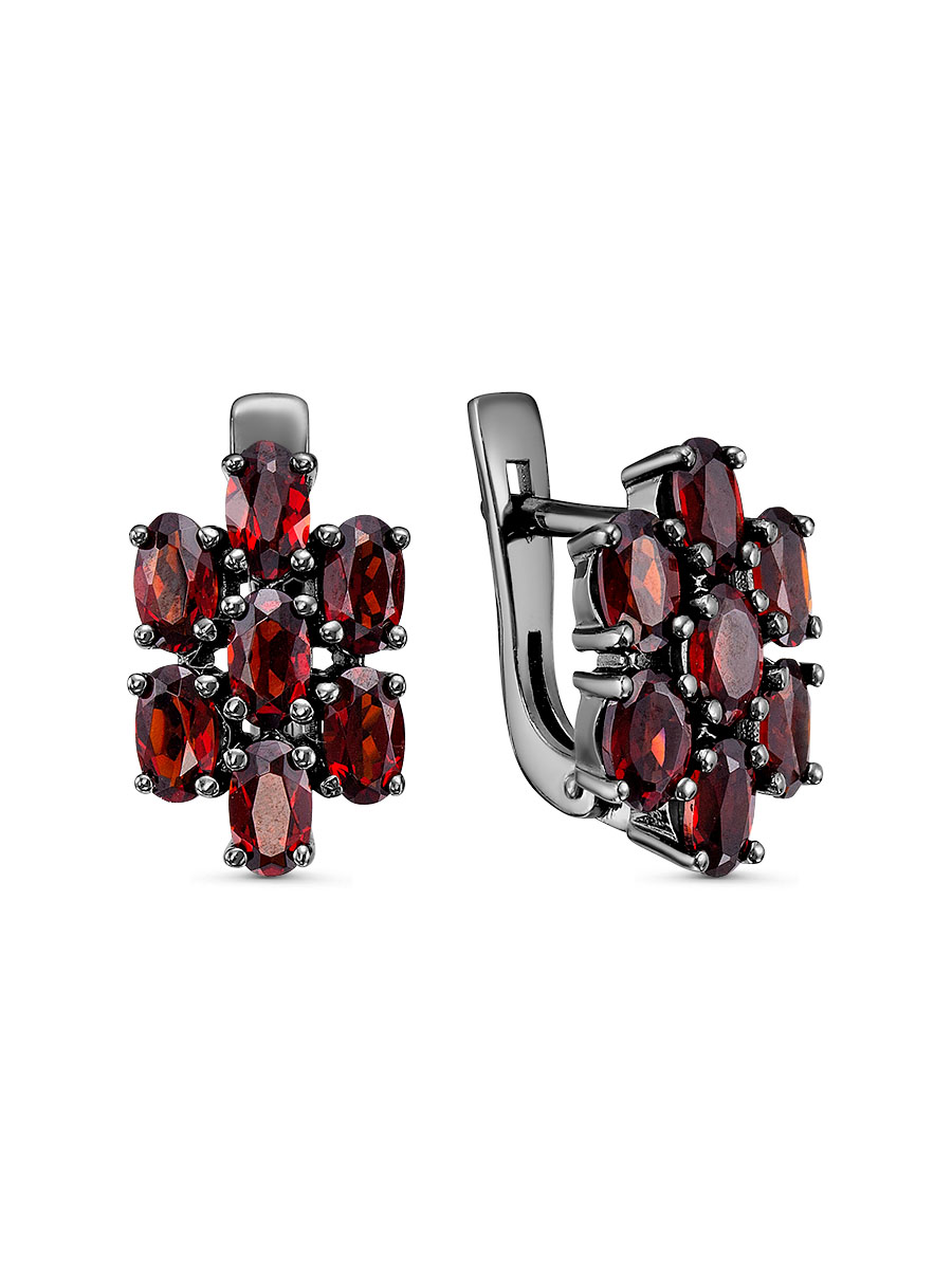 Серьги выполнены из серебра 925 пробы с покрытием родий и клеар. Характеристики. Вставка 14 натуральных гранатов 5х3 мм огранка овал. Высота серьги 15,5 мм, ширина 10 мм. Рабочая зона штифта 6,8 мм, размер занижения штифта 2,7 мм. Отличным дополнением к серьгам будет кольцо арт. 1-04-330-03чр. Берегите изделие от воздействия влаги, любых спиртосодержащих растворов и жидкостей, а также парфюма. Для ухода и чистки желательно использовать специальные салфетки для серебра. Приятным дополнением к ювелирному украшению является фирменная упаковка. Значения веса и габаритов в характеристиках примерные и могут отличаться от фактических.