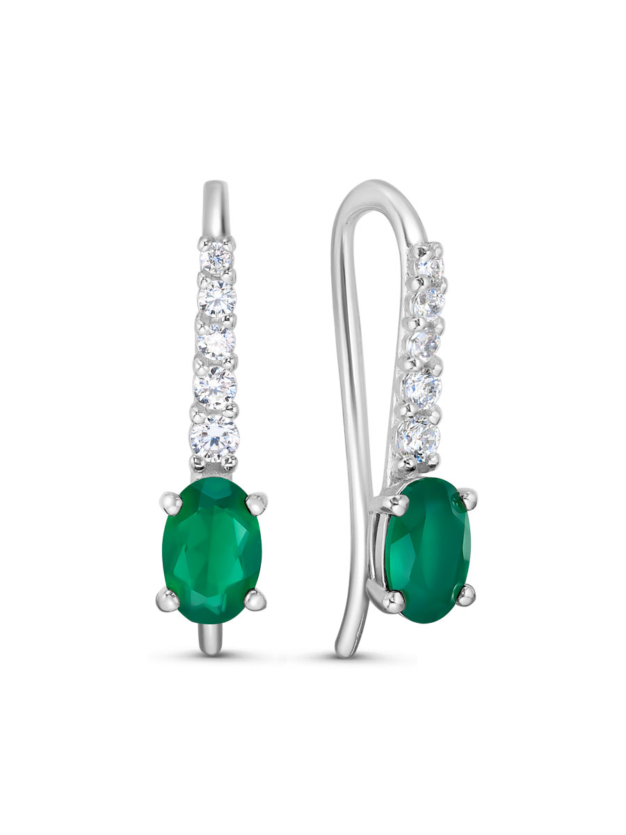 Серьги с натуральными агатами выполнены из серебра 925 пробы с родиевым покрытием. Характеристики. Вставка 2 натуральных агата 6х4 мм цвет зелёный огранка овал, 2 недрагоценных бесцветных фианита 2 мм огранка круг, 2 недрагоценных бесцветных фианита 1,75 мм огранка круг, 4 недрагоценных бесцветных фианита 1,5 мм огранка круг, 2 недрагоценных бесцветных фианита 1,25 мм огранка круг. Высота серьги 17,7 мм. Внутренний радиус петли 5,3 мм. Толщина крючка 1 мм. Берегите изделие от воздействия влаги, любых спиртосодержащих растворов и жидкостей, а также парфюма. Для ухода и чистки желательно использовать специальные салфетки для серебра. Приятным дополнением к ювелирному украшению является фирменная упаковка. Значение веса и габаритов в характеристиках примерные и могут отличаться от фактических.