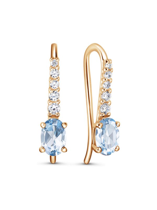 Серьги с натуральными гранатами выполнены из серебра 925 пробы с золотым покрытием. Характеристики. Вставка 2 натуральных топаза 6х4 мм цвет Скай огранка овал, 2 недрагоценных бесцветных фианита 2 мм огранка круг, 2 недрагоценных бесцветных фианита 1,75 мм огранка круг, 4 недрагоценных бесцветных фианита 1,5 мм огранка круг, 2 недрагоценных бесцветных фианита 1,25 мм огранка круг. Высота серьги 17,7 мм. Внутренний радиус петли 5,3 мм. Толщина крючка 1 мм. отличным дополнением к серьгам будет кольцо арт. 1-04-335-08з. Берегите изделие от воздействия влаги, любых спиртосодержащих растворов и жидкостей, а также парфюма. Для ухода и чистки желательно использовать специальные салфетки для серебра. Приятным дополнением к ювелирному украшению является фирменная упаковка. Значение веса и габаритов в характеристиках примерные и могут отличаться от фактических.