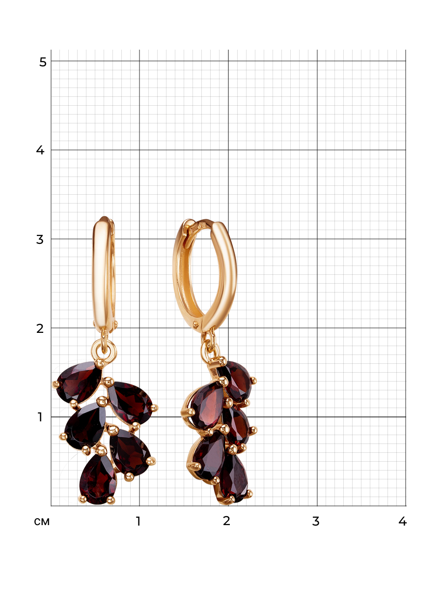 Серьги выполнены из серебра 925 пробы с золотым покрытием. Характеристики. Вставка 10 натуральных гранатов 6х4 мм цвет гранат огранка груша. Общая высота серьги 32 мм, высота подвесной части 18 мм, ширина 11,5 мм. Замок конго. Рабочая зона штифта 6,7 мм. Толщина штифта 1,1х0,9 мм. Отличным дополнением к серьгам будет подвеска арт. 3-04-340-03з. Берегите изделие от воздействия влаги, любых спиртосодержащих растворов и жидкостей, а также парфюма. Для ухода и чистки желательно использовать специальные салфетки для серебра. Приятным дополнением к ювелирному украшению является фирменная упаковка. Значение веса и габаритов в характеристиках примерные и могут отличаться от фактических.