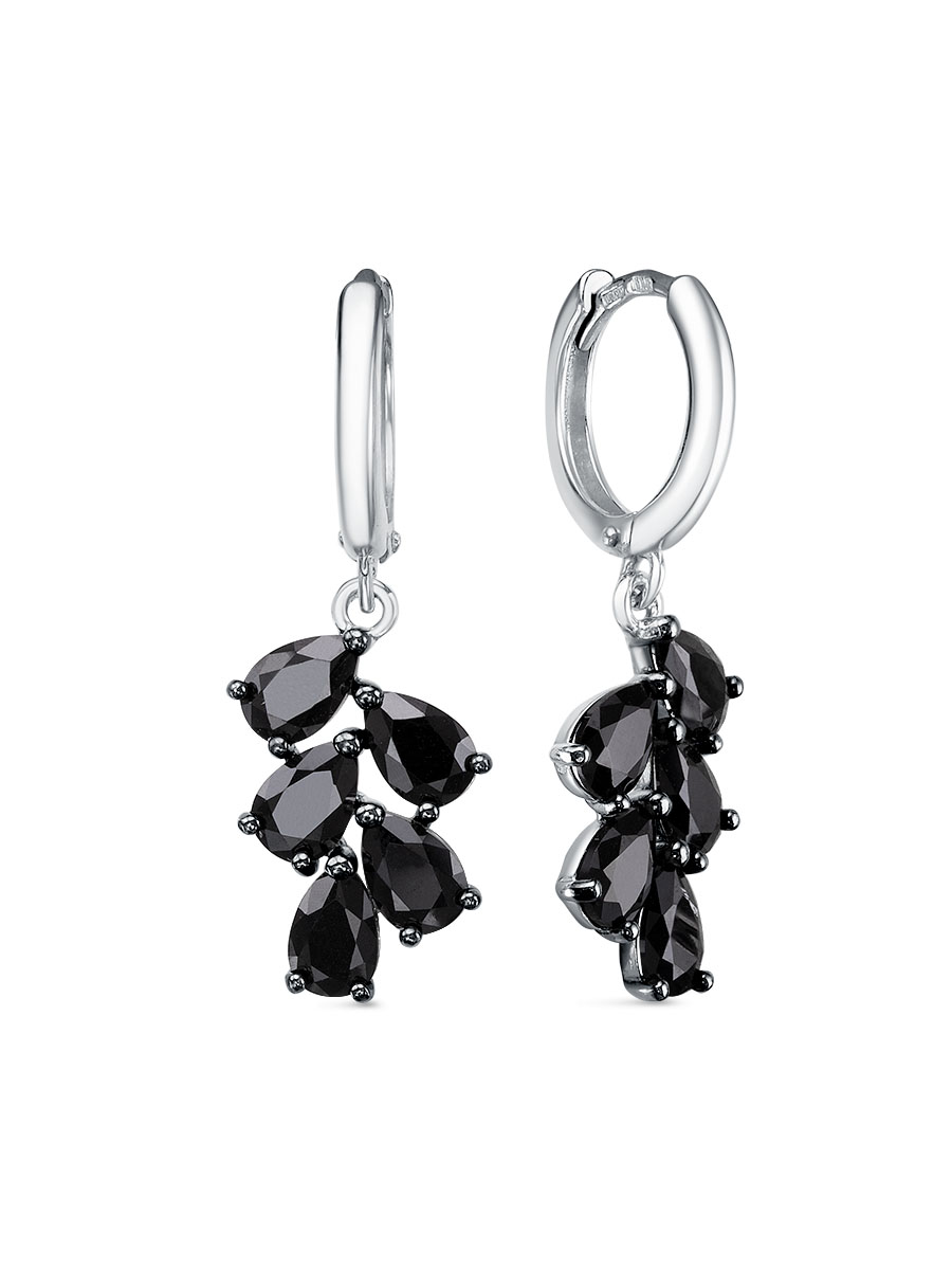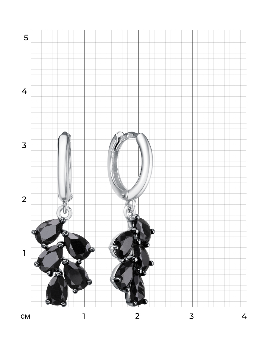 Серьги выполнены из серебра 925 пробы с родиевым покрытием. Характеристики. Вставка 10 натуральных шпинелей 6х4мм цвет чёрный огранка груша. Общая высота серьги 32мм, высота подвесной части 18мм, ширина 11,5мм. Замок конго. Рабочая зона штифта 6,7мм. Толщина штифта 1,1х0,9 мм. Отличным дополнением к серьгам будет подвеска арт. 3-04-340-11р. Берегите изделие от воздействия влаги, любых спиртосодержащих растворов и жидкостей, а также парфюма. Для ухода и чистки желательно использовать специальные салфетки для серебра. Приятным дополнением к ювелирному украшению является фирменная упаковка. Значение веса и габаритов в характеристиках примерные и могут отличаться от фактических.