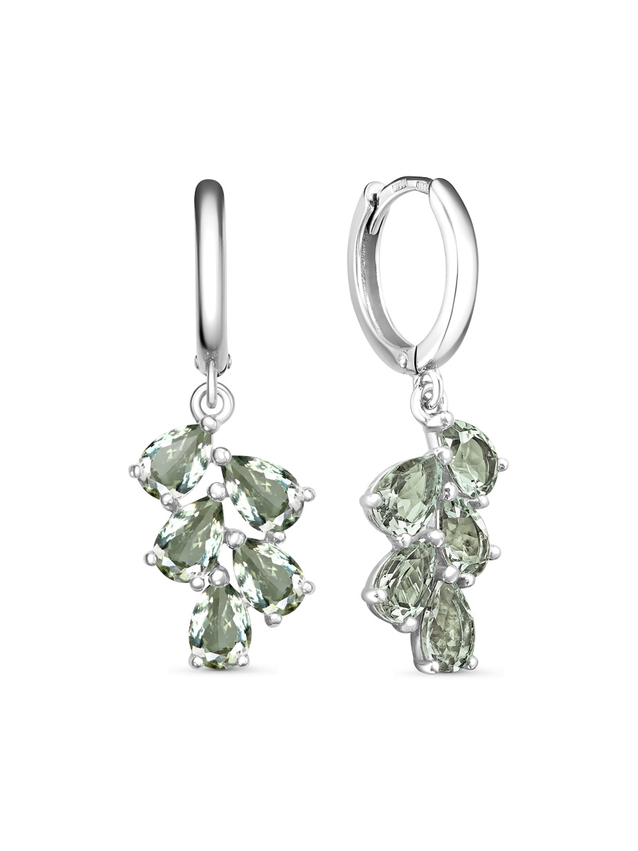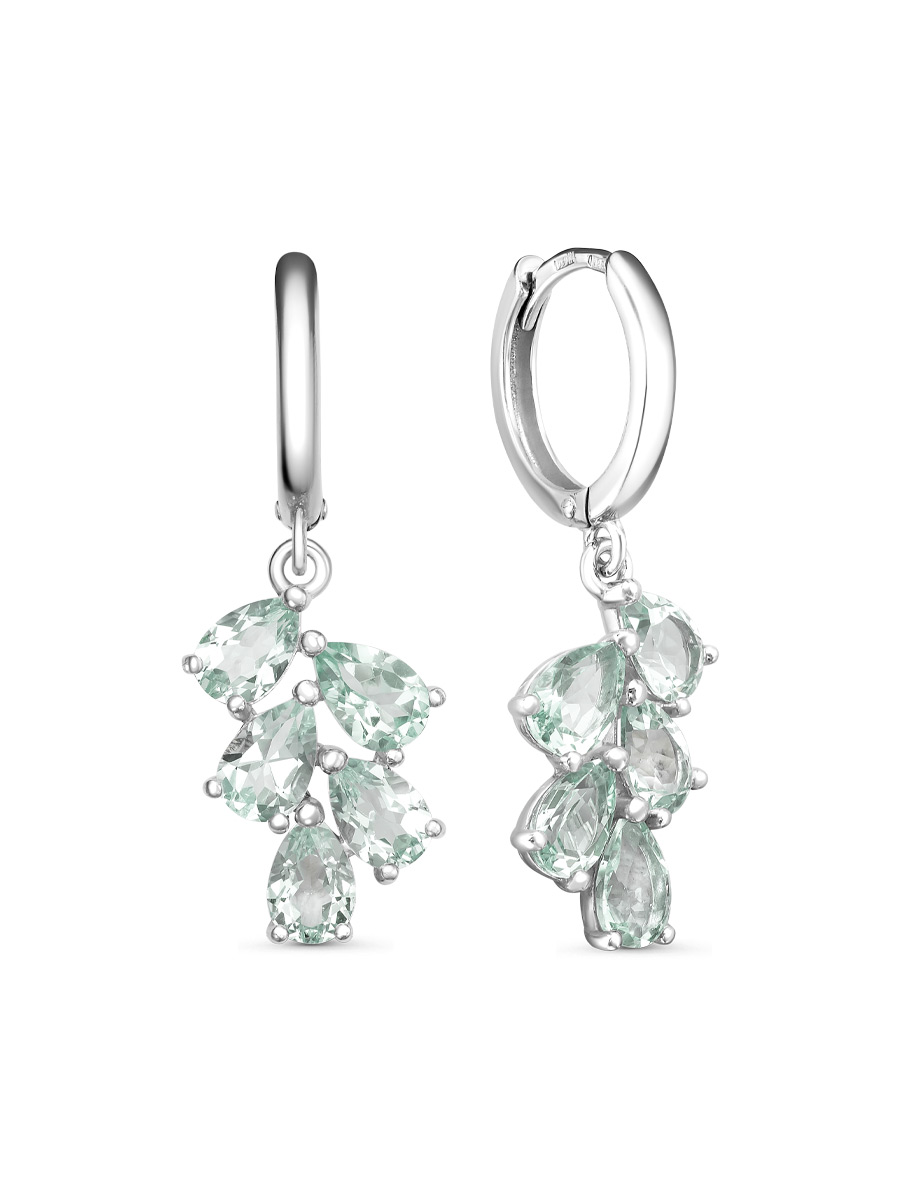 Серьги выполнены из серебра 925 пробы с родиевым покрытием. Характеристики. Вставка 10 натуральных празиолитов 6х4 мм огранка груша. Общая высота серьги 32 мм, высота подвесной части 18 мм, ширина 11,5 мм. Замок конго. Рабочая зона штифта 6,7 мм. Толщина штифта 1,1х0,9 мм. Отличным дополнением к серьгам будет подвеска арт. 3-04-340-21р. Берегите изделие от воздействия влаги, любых спиртосодержащих растворов и жидкостей, а также парфюма. Для ухода и чистки желательно использовать специальные салфетки для серебра. Приятным дополнением к ювелирному украшению является фирменная упаковка. Значение веса и габаритов в характеристиках примерные и могут отличаться от фактических.