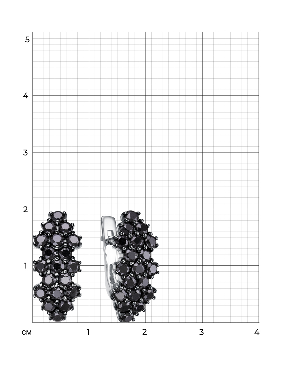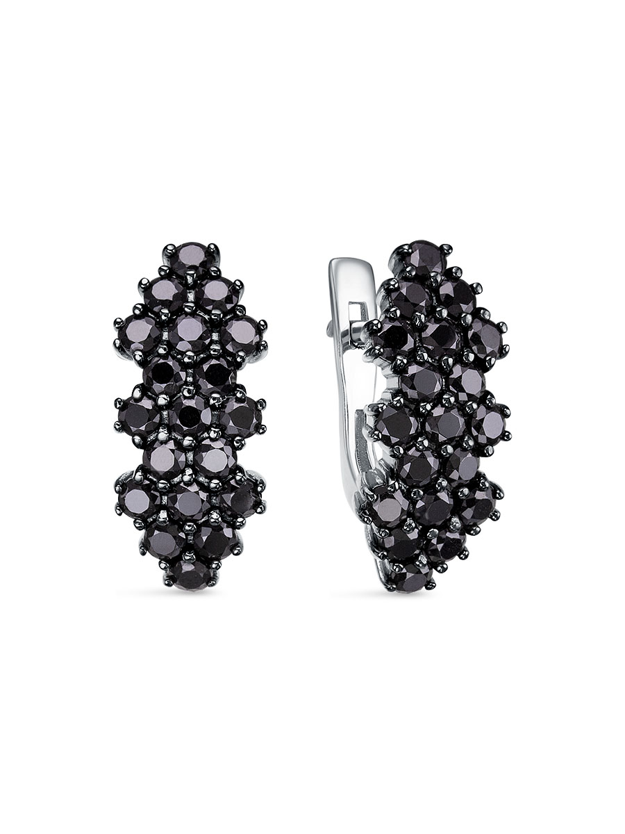 Серьги выполнены из серебра 925 пробы с родиевым покрытием. Характеристики. Вставка 38 натуральных шпинелей 2,5мм цвет чёрный огранка круг. Высота серьги 19,7мм, ширина 8,7мм. Замок английский. Рабочая зона штифта 6,7мм, размер занижения штифта 3,5мм. Отличным дополнением к серьгам будут кольцо арт. 1-04-343-11р и подвеска арт. 3-04-343-11р. Берегите изделие от воздействия влаги, любых спиртосодержащих растворов и жидкостей, а также парфюма. Для ухода и чистки желательно использовать специальные салфетки для серебра. Приятным дополнением к ювелирному украшению является фирменная упаковка. Значение веса и габаритов в характеристиках примерные и могут отличаться от фактических.