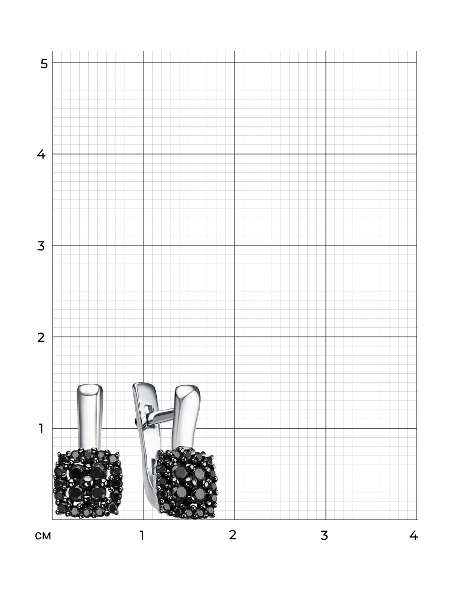 Серьги выполнены из серебра 925 пробы с родиевым покрытием. Характеристики. Вставка 8 натуральных шпинелей 2мм цвет чёрный огранка круг, 32 натуральных шпинели 1,25мм цвет чёрный огранка круг. Высота серьги 14,8мм, ширина 7,8мм. Замок английский. Рабочая зона штифта 6,5мм, размер занижения штифта 2мм. Отличным дополнением к серьгам будут кольцо арт. 1-04-345-11р и подвеска арт. 3-04-345-11р. Берегите изделие от воздействия влаги, любых спиртосодержащих растворов и жидкостей, а также парфюма. Для ухода и чистки желательно использовать специальные салфетки для серебра. Приятным дополнением к ювелирному украшению является фирменная упаковка. Значение веса и габаритов в характеристиках примерные и могут отличаться от фактических.