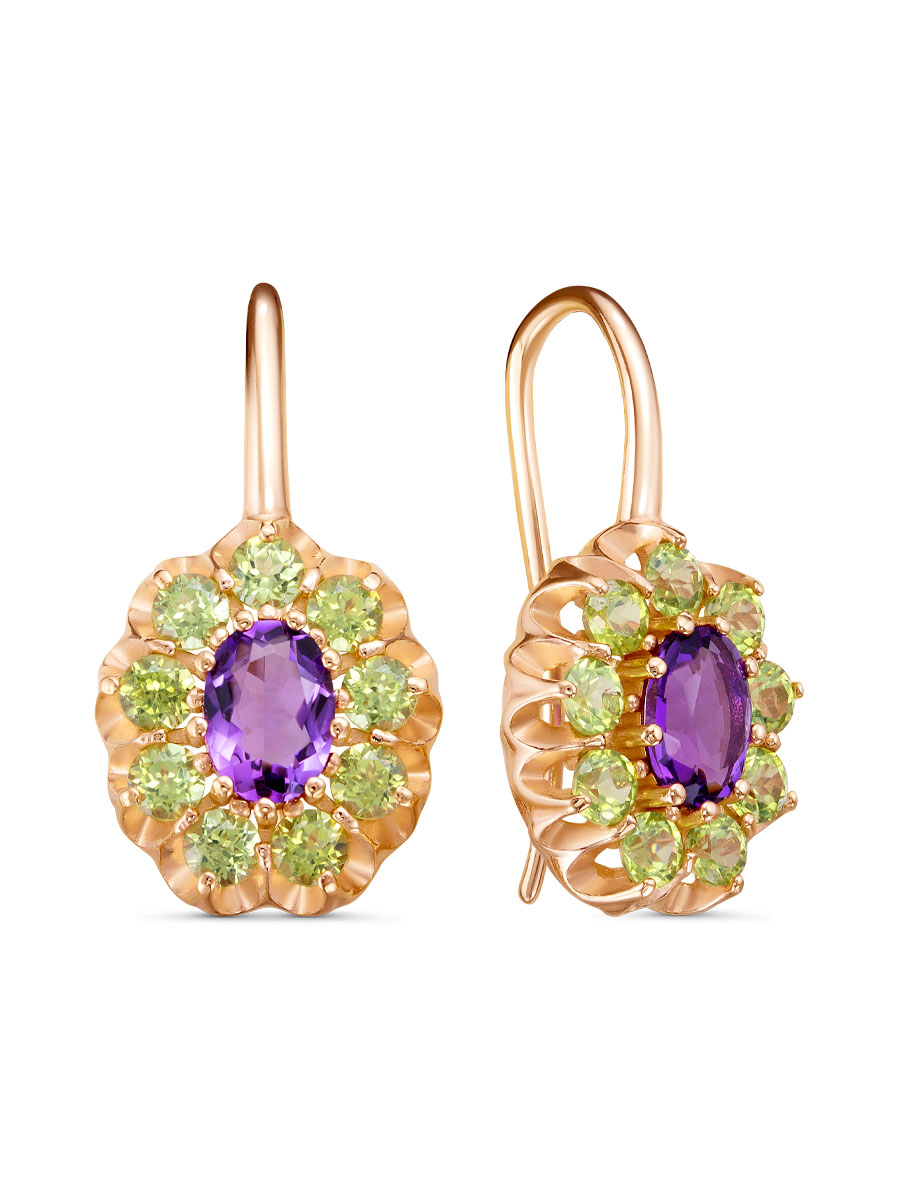 Серьги выполнены из серебра 925 пробы с родиевым покрытием. Характеристики. Вставка 2 натуральных аметиста 7х5 мм цвет фиолетовый огранка овал, 18 натуральных хризолитов 3 мм цвет зелёный огранка круг. Высота серьги 25 мм. Высота декоративной части 15,3 мм, ширина 13,3. Длина крючка 24,3 мм. Внутренний диаметр петли 5,5 мм. Толщина крючка 1,1 мм. Отличным дополнением к серьгам будет кольцо арт. 1-04-375-13з и подвеска арт. 3-04-375-13з. Берегите изделие от воздействия влаги, любых спиртосодержащих растворов и жидкостей, а также парфюма. Для ухода и чистки желательно использовать специальные салфетки для серебра. Приятным дополнением к ювелирному украшению является фирменная упаковка. Значение веса и габаритов в характеристиках примерные и могут отличаться от фактических.