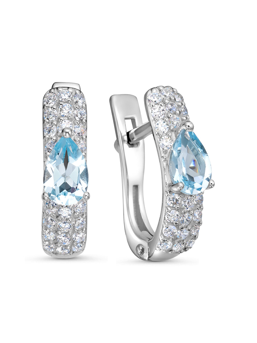 Серьги выполнены из серебра 925 пробы с родиевым покрытием. Характеристики. Вставка 2 натуральных топаза 6х4 мм цвет Скай огранка груша, 46 недрагоценных бесцветных фианитов 1,25 мм огранка круг. Высота серьги 14,5 мм, ширина 4 мм. Замок английский. Расстояние от штифта до декоративной части 9,4 мм. Рабочая зона штифта 6 мм, ширина штифта 1,2х0,9 мм. Размер занижения штифта 2 мм. Отличным дополнением к серьгам будет кольцо арт. 1-04-402-08р. Берегите изделие от воздействия влаги, любых спиртосодержащих растворов и жидкостей, а также парфюма. Для ухода и чистки желательно использовать специальные салфетки для серебра. Приятным дополнением к ювелирному украшению является фирменная упаковка. Значения веса и габаритов в характеристиках являются примерными и могут отличаться от фактических.