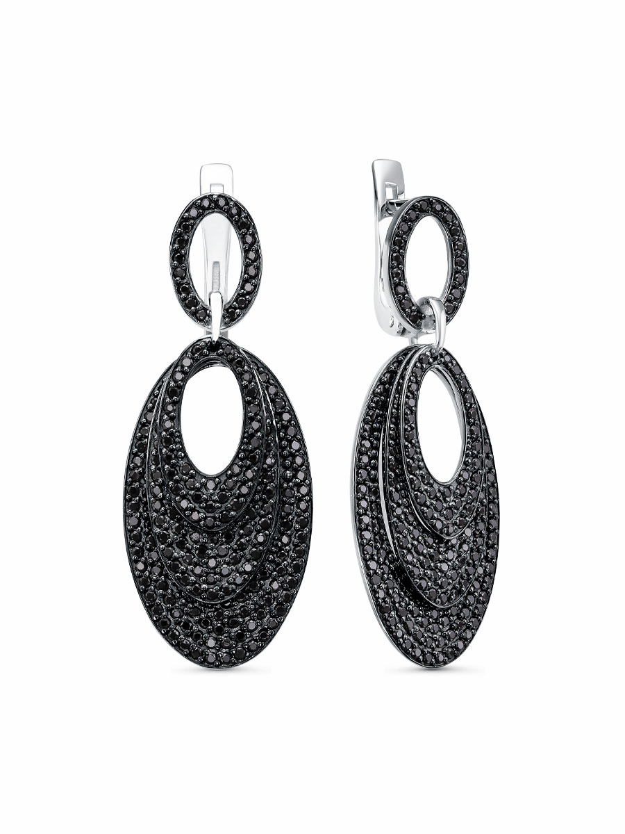 Серьги выполнены из серебра 925 пробы с родиевым покрытием. Характеристики. Вставка 378 натуральных шпинелей 1 мм цвет чёрный огранка круг. Общая высота серьги 39 мм. Высота верхней декоративной части 11,5 мм, ширина 7,7 мм. Высота большого овала 26,5 мм, ширина 15,5 мм. Высота среднего овала 21,5 мм, ширина 10,5 мм. Высота среднего овала 16 мм, ширина 9 мм. Подвески несъёмные. Рабочая зона штифта 5,5 мм. Берегите изделие от воздействия влаги, любых спиртосодержащих растворов и жидкостей, а также парфюма. Для ухода и чистки желательно использовать специальные салфетки для серебра. Приятным дополнением к ювелирному украшению является фирменная упаковка. Значение веса и габаритов в характеристиках примерные и могут отличаться от фактических.