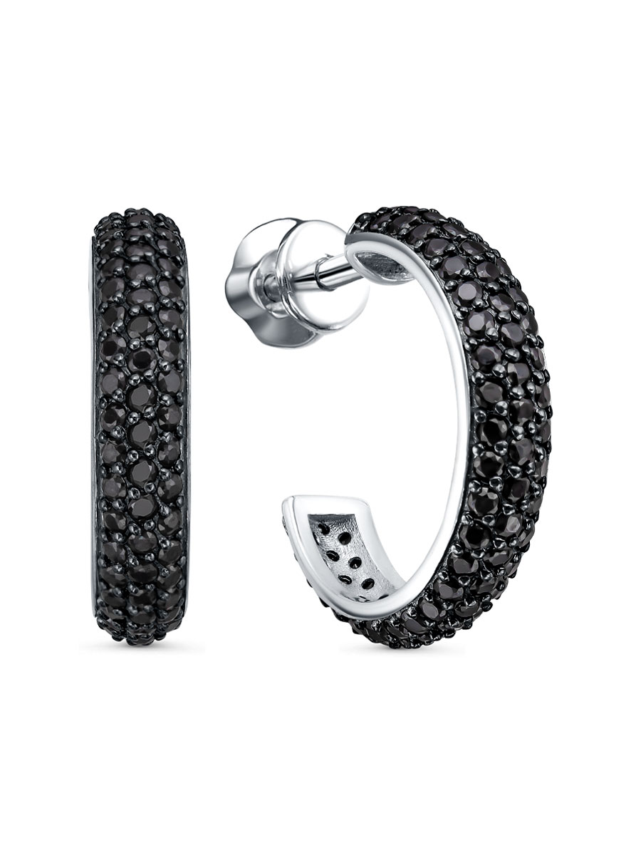 Серьги выполнены из серебра 925 пробы с родиевым покрытием. Характеристики. Вставка 146 натуральных шпинелей 1,25 мм цвет чёрный огранка круг. Высота серьги 17,2 мм, ширина 4,2 мм, глубина 17,2 мм. Внутренний диаметр 13,2 мм. Замок винтовой. Рабочая зона штифта 4,5 мм. Отличным дополнением к серьгам будет кольцо арт. 1-04-524-11р. Берегите изделие от воздействия влаги, любых спиртосодержащих растворов и жидкостей, а также парфюма. Для ухода и чистки желательно использовать специальные салфетки для серебра. Приятным дополнением к ювелирному украшению является фирменная упаковка. Значение веса и габаритов в характеристиках примерные и могут отличаться от фактических.