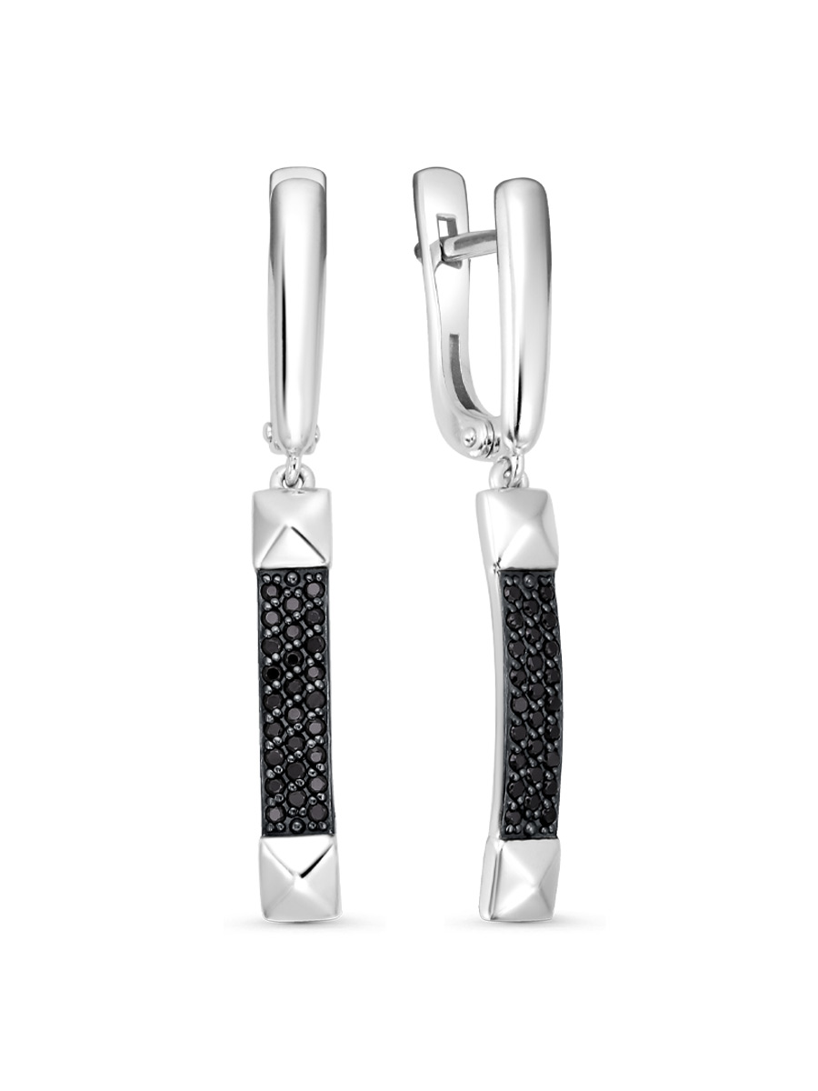 Серьги выполнены из серебра 925 пробы с родиевым покрытием. Характеристики. Вставка 52 натуральных шпинели 1 мм цвет чёрный огранка круг. Общая высота серьги 37 мм, ширина верхней части 2,9 мм. Высота палочки без учёта соединительного колечка 21,5 мм, ширина дорожки из камней 3,7 мм, ширина пирамидок 4,1 мм. Расстояние внутри от крючка до нижней части серьги 8,2 мм. Замок английский. Рабочая зона штифта 5,8 мм, размер занижения штифта 2 мм. Толщина штифта 1,2х1 мм. Отличным дополнением к серьгам будет кольцо арт.1-04-725-11р. Берегите изделие от воздействия влаги, любых спиртосодержащих растворов и жидкостей, а также парфюма. Для ухода и чистки желательно использовать специальные салфетки для серебра. Приятным дополнением к ювелирному украшению является фирменная упаковка. Значение веса и габаритов в характеристиках примерные и могут отличаться от фактических.