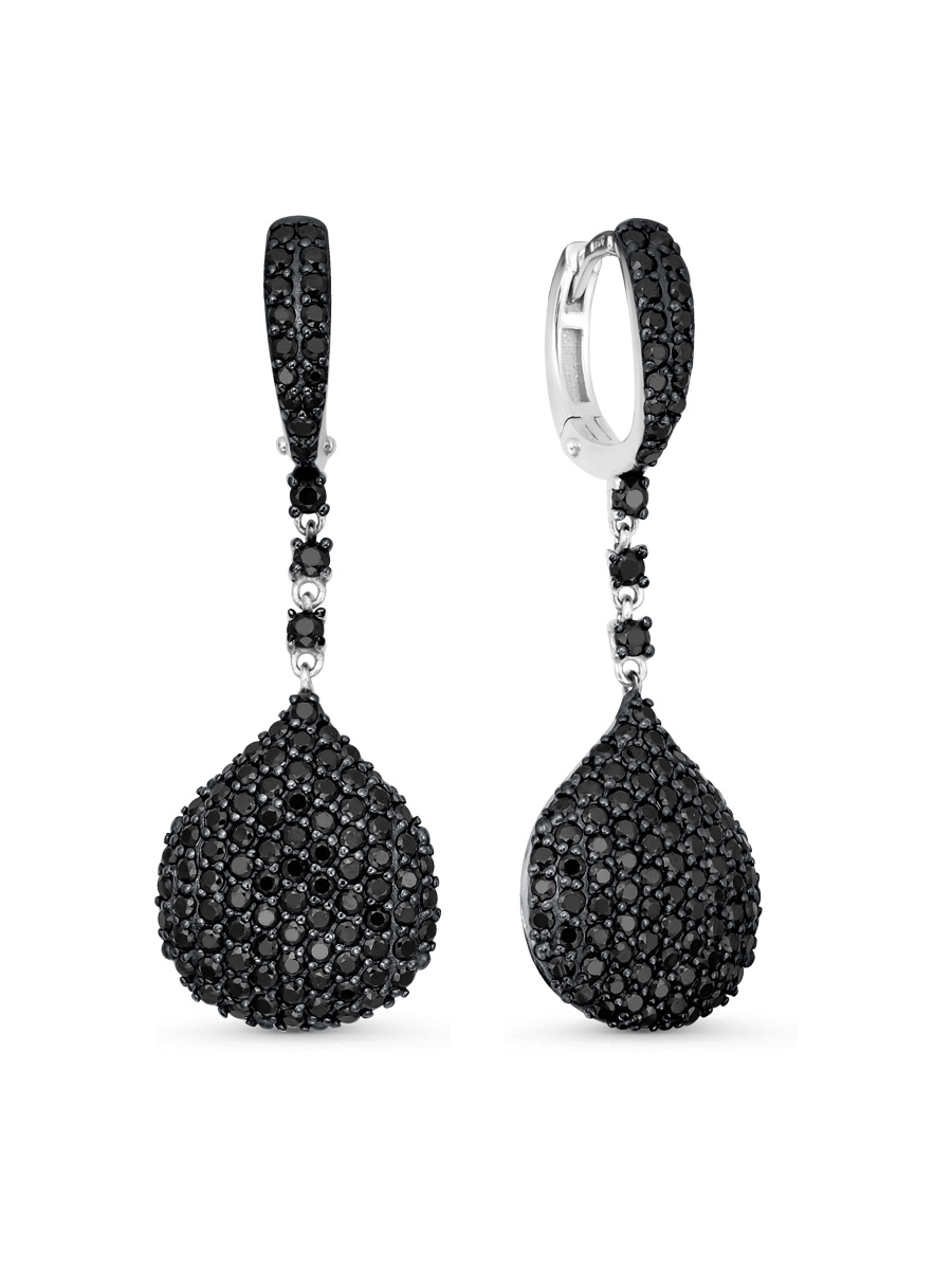 Серьги выполнены из серебра 925 пробы с родиевым покрытием. Характеристики. Вставка 6 натуральных шпинелей 1,75 мм цвет чёрный огранка круг, 194 натуральных шпинели 1,25 мм цвет чёрный огранка круг, 12 натуральных шпинелей 1 мм цвет чёрный огранка круг. Общая высота серьги 37 мм, ширина верхней части 3,1 мм. Высота капли без учёта соединительного колечка 15,7 мм, ширина 13,3 мм, глубина 3,7 мм. Расстояние внутри от крючка до нижней части серьги 8,8 мм. Замок английский. Рабочая зона штифта 5,8 мм, размер занижения штифта 1 мм. Толщина штифта 1,1х0,9 мм. Отличным дополнением к серьгам будет кольцо арт.1-04-729-11р. Берегите изделие от воздействия влаги, любых спиртосодержащих растворов и жидкостей, а также парфюма. Для ухода и чистки желательно использовать специальные салфетки для серебра. Приятным дополнением к ювелирному украшению является фирменная упаковка. Значение веса и габаритов в характеристиках примерные и могут отличаться от фактических.