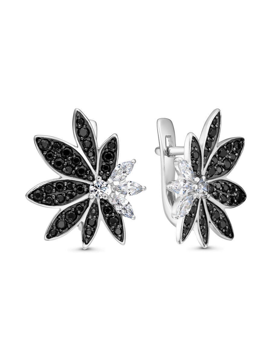 Серьги выполнены из серебра 925 пробы с родиевым покрытием. Характеристики. Вставка 20 натуральных шпинелей 1,5 мм цвет чёрный огранка круг, 26 натуральных шпинелей 1,25 мм цвет чёрный огранка круг, 18 натуральных шпинелей 1 мм цвет чёрный огранка круг, 6 недрагоценных бесцветных фианитов 4х2 мм огранка маркиз, 2 недрагоценных бесцветных фианита 2,5 мм огранка круг. Высота серьги 19 мм, ширина 16 мм. Расстояние внутри от крючка до нижней части серьги 8 мм. Замок английский. Рабочая зона штифта 6 мм, размер занижения штифта 5 мм. Толщина штифта 1,2х0,9 мм. Отличным дополнением к серьгам будет кольцо арт.1-04-732-11-12р. Берегите изделие от воздействия влаги, любых спиртосодержащих растворов и жидкостей, а также парфюма. Для ухода и чистки желательно использовать специальные салфетки для серебра. Приятным дополнением к ювелирному украшению является фирменная упаковка. Значение веса и габаритов в характеристиках примерные и могут отличаться от фактических.