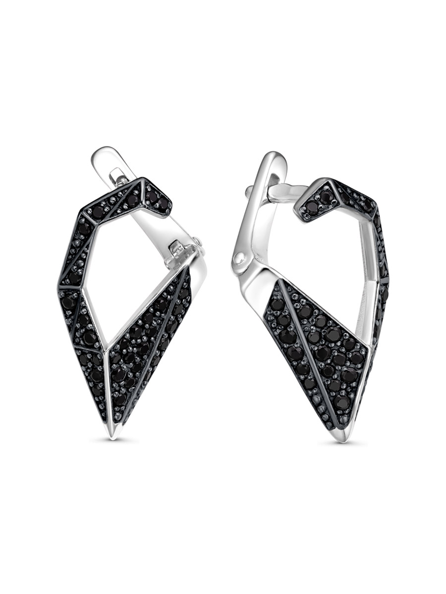 Серьги выполнены из серебра 925 пробы с родиевым покрытием. Характеристики. Вставка 30 натуральных шпинелей 1,25 мм цвет чёрный огранка круг, 14 натуральных шпинелей 1 мм цвет чёрный огранка круг, 76 недрагоценных бесцветных фианитов 1 мм огранка круг. Замок английский. Высота серьги 20 мм, ширина 11 мм. Рабочая зона штифта 5,8 мм, толщина штифта 1,3х1,1 мм. Отличным дополнением к серьгам будет кольцо арт.1-04-736-11р. Берегите изделие от воздействия влаги, любых спиртосодержащих растворов и жидкостей, а также парфюма. Для ухода и чистки желательно использовать специальные салфетки для серебра. Приятным дополнением к ювелирному украшению является фирменная упаковка. Значение веса и габаритов в характеристиках примерные и могут отличаться от фактических.