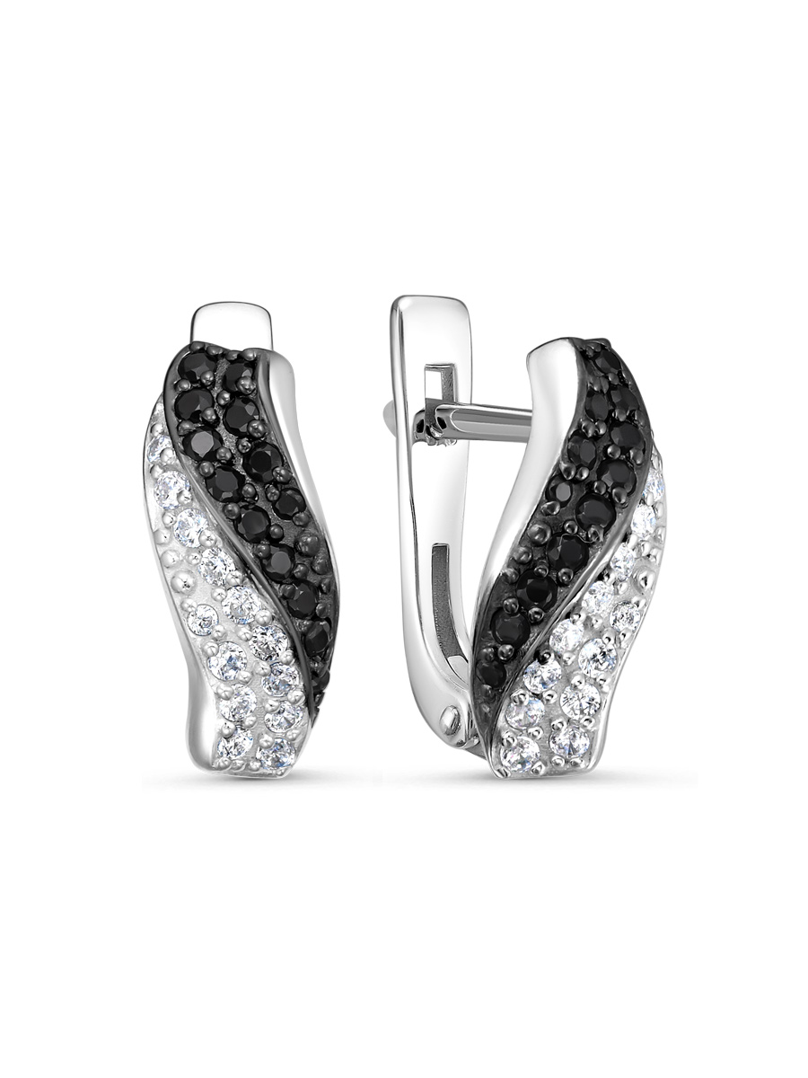 Серьги выполнены из серебра 925 пробы с родиевым покрытием. Характеристики. Вставка 22 натуральных шпинели 1,25 мм цвет чёрный огранка круг, 4 натуральных шпинели 1 мм цвет чёрный огранка круг, 22 недрагоценных бесцветных фианита 1,25 мм огранка круг, 4 недрагоценных бесцветных фианита 1 мм огранка круг. Высота серьги 14,2 мм, ширина 7,2 мм. Расстояние внутри от крючка до нижней части серьги 8,5 мм. Замок английский. Рабочая зона штифта 5,7 мм, размер занижения штифта 2 мм. Толщина штифта 1,2х0,9 мм. Отличным дополнением к серьгам будет кольцо арт.1-04-763-11-12р. Берегите изделие от воздействия влаги, любых спиртосодержащих растворов и жидкостей, а также парфюма. Для ухода и чистки желательно использовать специальные салфетки для серебра. Приятным дополнением к ювелирному украшению является фирменная упаковка. Значение веса и габаритов в характеристиках примерные и могут отличаться от фактических.