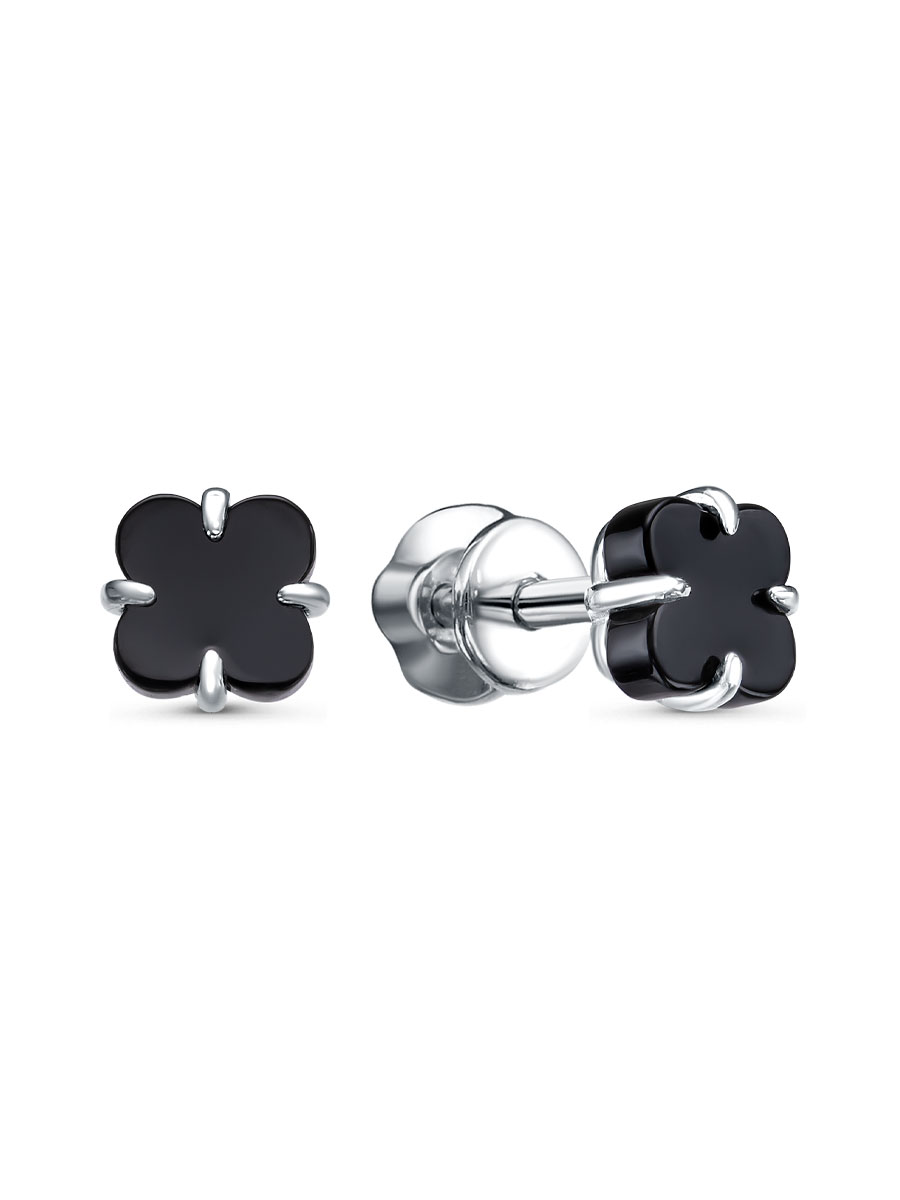 Пусеты выполнены из серебра 925 пробы с родиевым покрытием. Характеристики. Вставка 2 натуральных оникса 6х6 мм цвет чёрный огранка VC. Диаметр цветка 6 мм. Рабочая зона штифта 4,5 мм. Замок винтовой. Берегите изделие от воздействия влаги, любых спиртосодержащих растворов и жидкостей, а также парфюма. Для ухода и чистки желательно использовать специальные салфетки для серебра. Приятным дополнением к ювелирному украшению является фирменная упаковка. Значение веса в характеристиках является примерным и может отличаться от фактического.
