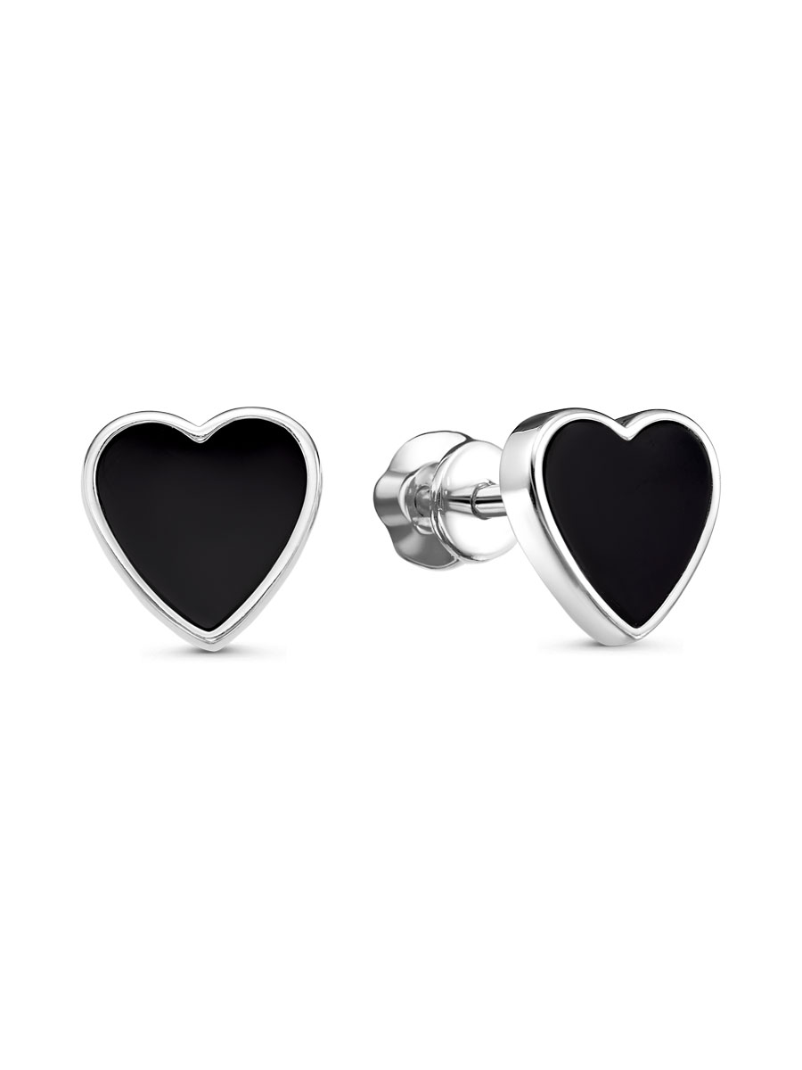 Серьги выполнены из серебра 925 пробы с родиевым покрытием. Характеристики. Вставка 2 натуральных оникса 8х8 мм огранка сердце. Высота сердца 9,3 мм, ширина 9,4 мм, глубина 2,5 мм. Замок винтовой. Рабочая зона штифта 4,2 мм, толщина штифта 1,2 мм. Отличным дополнением к пусетам будет колье арт. 5-05-627-34р. Берегите изделие от воздействия влаги, любых спиртосодержащих растворов и жидкостей, а также парфюма. Для ухода и чистки желательно использовать специальные салфетки для серебра. Приятным дополнением к ювелирному украшению является фирменная упаковка. Значение веса и габаритов в характеристиках примерные и могут отличаться от фактических.