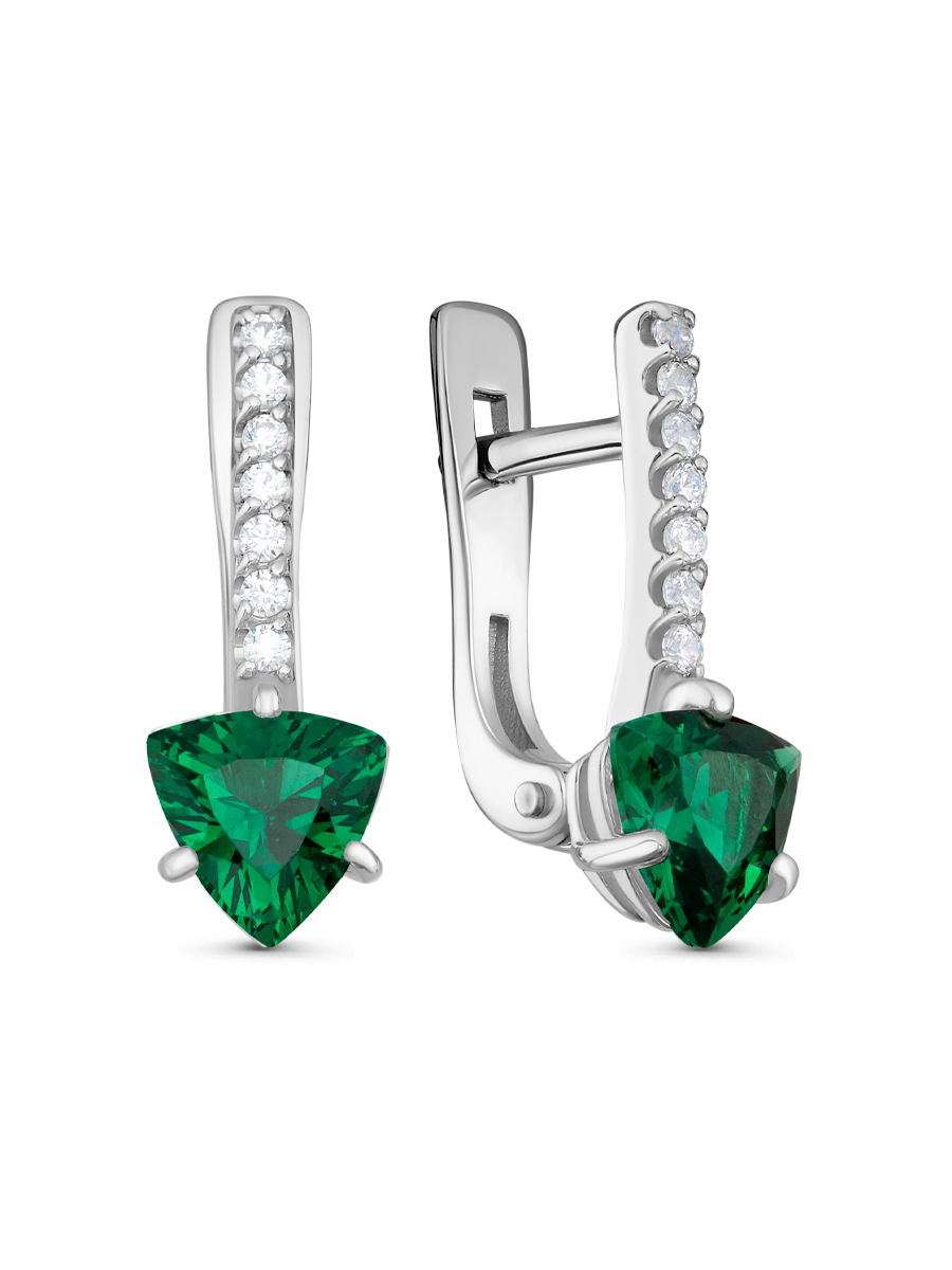 Серьги выполнены из серебра 925 пробы с родиевым покрытием. Характеристики. Вставка 2 нано изумруда 6х6 мм огранка триллион, 14 недрагоценных бесцветных фианитов 1,25 мм огранка круг. Высота серьги 17 мм, ширина 6 мм. Ширина дорожки из фианитов 1,7 мм. Рабочая зона штифта 6 мм, размер занижения штифта 2,5 мм. Берегите изделие от воздействия влаги, любых спиртосодержащих растворов и жидкостей, а также парфюма. Для ухода и чистки желательно использовать специальные салфетки для серебра. Приятным дополнением к ювелирному украшению является фирменная упаковка. Значения веса и габаритов в характеристиках примерные и могут отличаться от фактических.