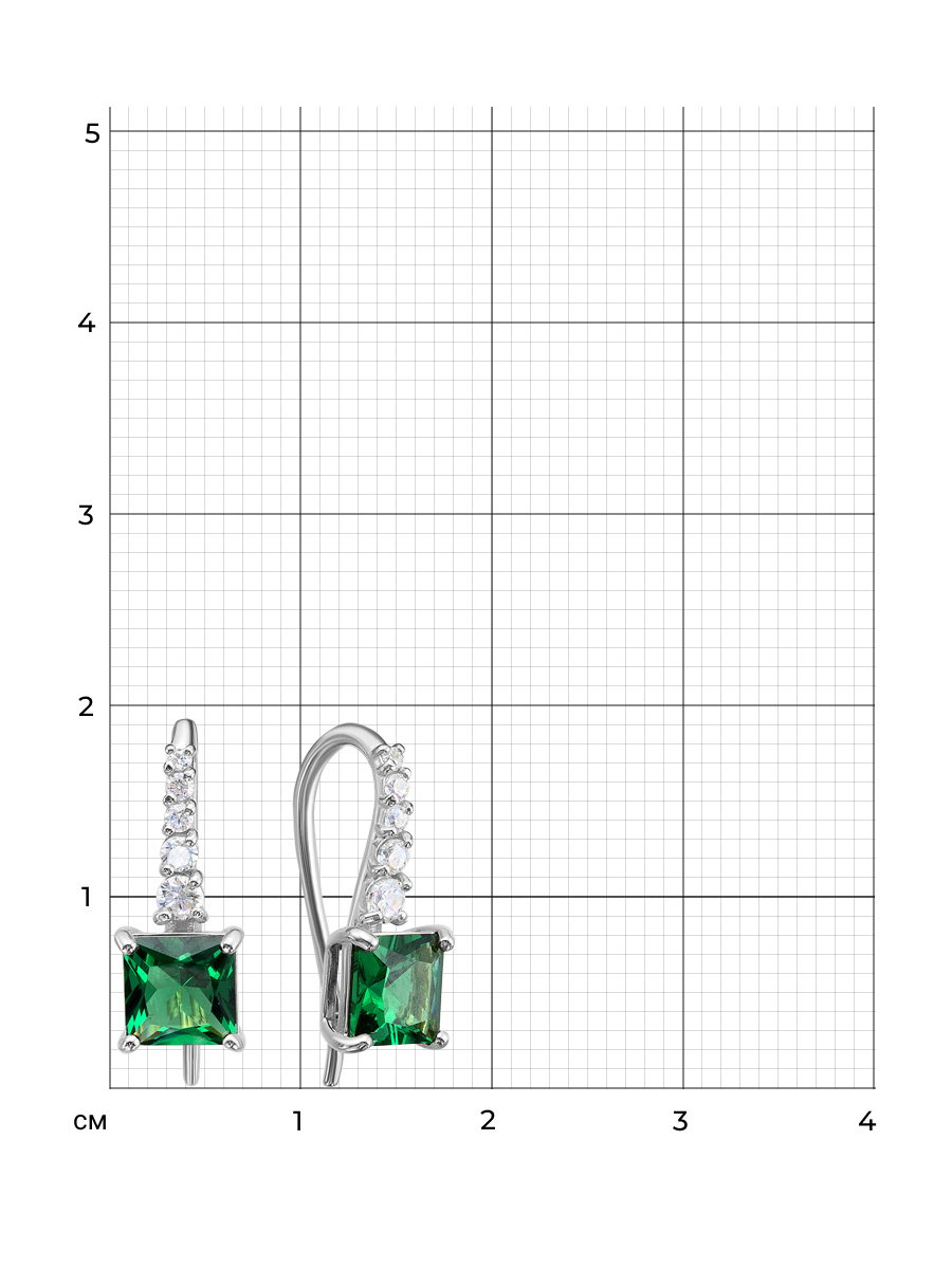 Серьги выполнены из серебра 925 пробы с родиевым покрытием. Характеристики. Вставка 2 недрагоценных бесцветных фианита 1,25мм огранка круг, 4 недрагоценных бесцветных фианита 1,5мм огранка круг, 2 недрагоценных бесцветных фианита 2мм огранка круг, 2 недрагоценных бесцветных фианита 2,5мм огранка круг, 2 нанокристалла 6х6мм цвет изумруд огранка квадрат. Высота серьги 18,5мм, ширина 7мм, глубина вместе с камнем 4,5мм. Длина крючка 21мм. Внутренний радиус петли 6,3мм. Отличным дополнением к серьгам будут кольцо арт.1-06-290-16р и подвеска арт.3-06-290-16р. Берегите изделие от воздействия влаги, любых спиртосодержащих растворов и жидкостей, а также парфюма. Для ухода и чистки желательно использовать специальные салфетки для серебра. Приятным дополнением к ювелирному украшению является фирменная упаковка. Значение веса и габаритов в характеристиках примерные и могут отличаться от фактических.