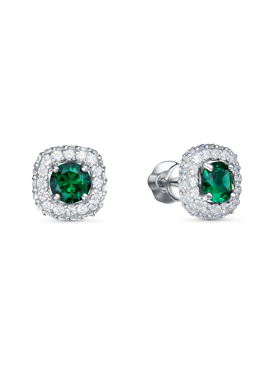 Серьги выполнены из серебра 925 пробы с родиевым покрытием. Характеристики. Вставка 2 нано изумруда 5 мм огранка круг, 70 недрагоценных бесцветных фианитов 1,25 огранка круг. Высота серьги 9,2 мм, ширина 9,2 мм, глубина 3,2 мм. Замок винтовой. Рабочая зона штифта 4,5 мм. Берегите изделие от воздействия влаги, любых спиртосодержащих растворов и жидкостей, а также парфюма. Для ухода и чистки желательно использовать специальные салфетки для серебра. Приятным дополнением к украшению является фирменная упаковка. Значение веса и габаритов в характеристиках являются примерными и могут отличаться от фактических.