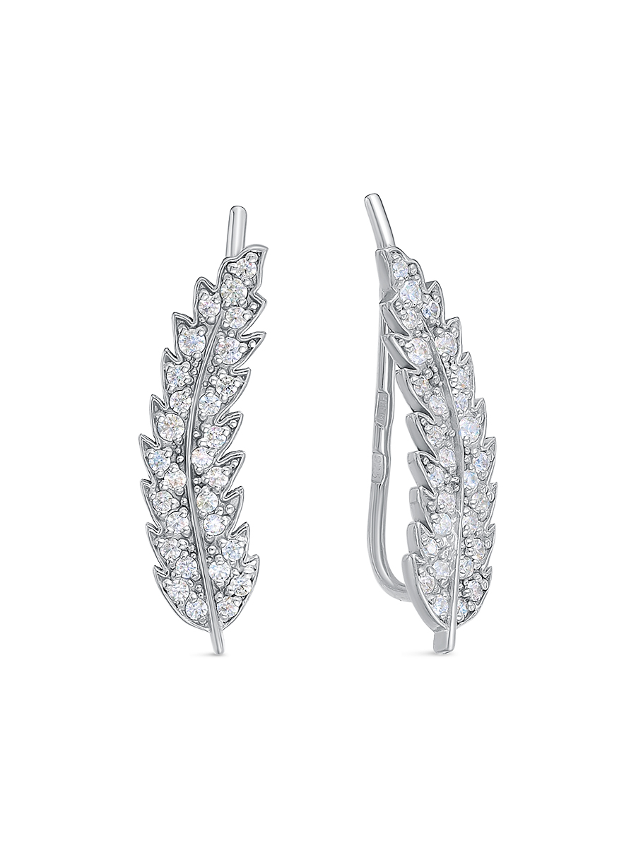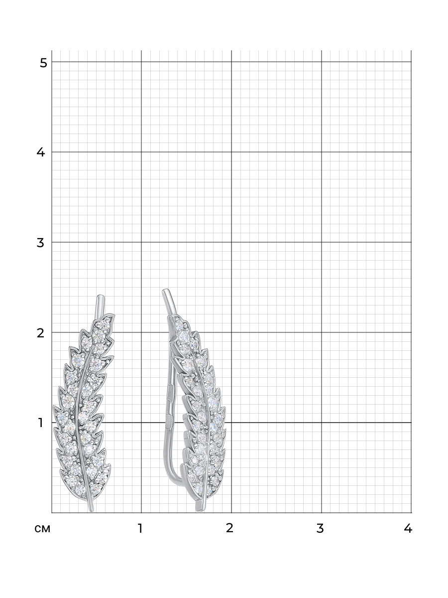 Серьги каффы выполнены из серебра 925 пробы с родиевым покрытием. Характеристики. Вставка 48 недрагоценных бесцветных фианитов 1 мм огранка круг, 8 недрагоценных бесцветных фианитов 1,25 мм огранка круг. Высота серьги 19,7 мм, ширина 6 мм, глубина 1,2 мм. Рабочая зона штифта 4 мм, длина крючка 18 мм, толщина крючка 0,9 мм. Берегите изделие от воздействия влаги, любых спиртосодержащих растворов и жидкостей, а также парфюма. Для ухода и чистки желательно использовать специальные салфетки для серебра. Приятным дополнением к ювелирному украшению является фирменная упаковка. Значение веса и габаритов в характеристиках примерные и могут отличаться от фактических.