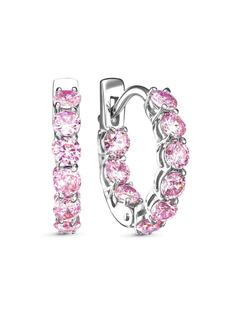 Серьги с фианитами выполнены из серебра 925 пробы с родиевым покрытием. Характеристики. Вставка 18 недрагоценных фианитов 3 мм цвет розовый огранка круг. Высота серьги 15,5 мм, ширина 3 мм. Рабочая зона штифта 8 мм. Берегите изделие от воздействия влаги, любых спиртосодержащих растворов и жидкостей, а также парфюма. Для ухода и чистки желательно использовать специальные салфетки для серебра. Приятным дополнением к ювелирному украшению является фирменная упаковка. Значения веса и габаритов в характеристиках примерные и могут отличаться от фактических.