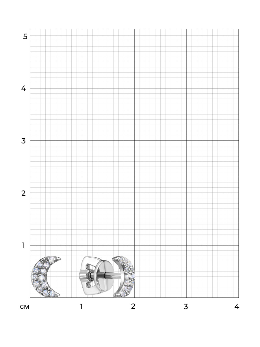 Пусеты Месяц с фианитами выполнены из серебра 925 пробы с родиевым покрытием. Характеристики. Вставка 24 недрагоценных бесцветных фианита 1мм огранка круг. Высота серьги 7,5мм, ширина 5,3мм, глубина 1,3мм. Рабочая зона штифта 4,5мм. Берегите изделие от воздействия влаги, любых спиртосодержащих растворов и жидкостей, а также парфюма. Для ухода и чистки желательно использовать специальные салфетки для серебра. Приятным дополнением к ювелирному украшению является фирменная упаковка. Значение веса и габаритов в характеристиках примерные и могут отличаться от фактических.