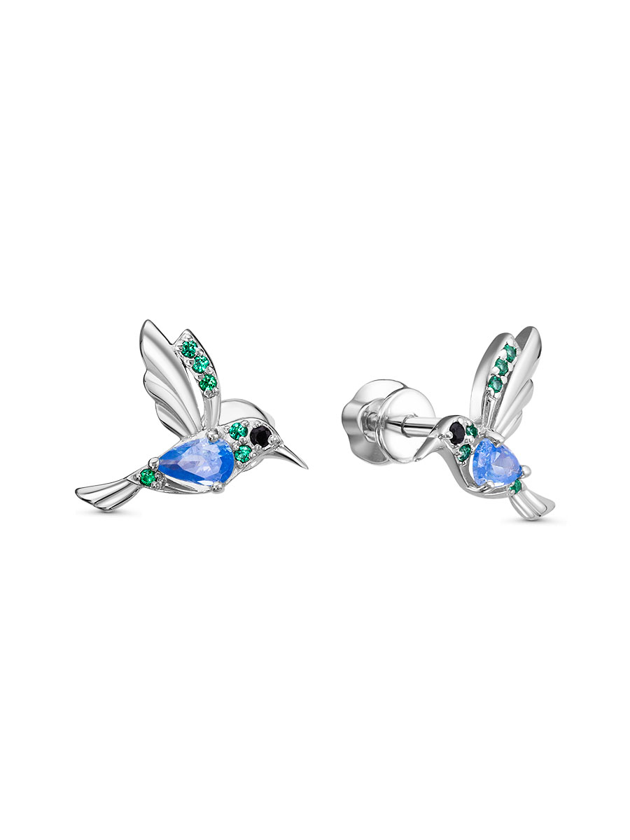 Серьги выполнены из серебра 925 пробы с родиевым покрытием. Характеристики. Вставка 2 кристаллиана 5х3 мм огранка груша, 12 нано изумрудов 1 мм цвет изумруд огранка круг, 2 недрагоценных фианита 1,25 мм цвет чёрный огранка круг. Высота серьги 12 мм, ширина 13,5 мм. Замок винтовой. Рабочая зона штифта 4,5 мм. Берегите изделие от воздействия влаги, любых спиртосодержащих растворов и жидкостей, а также парфюма. Для ухода и чистки желательно использовать специальные салфетки для серебра. Приятным дополнением к украшению является фирменная упаковка. Значение веса и габаритов в характеристиках являются примерными и могут отличаться от фактических.