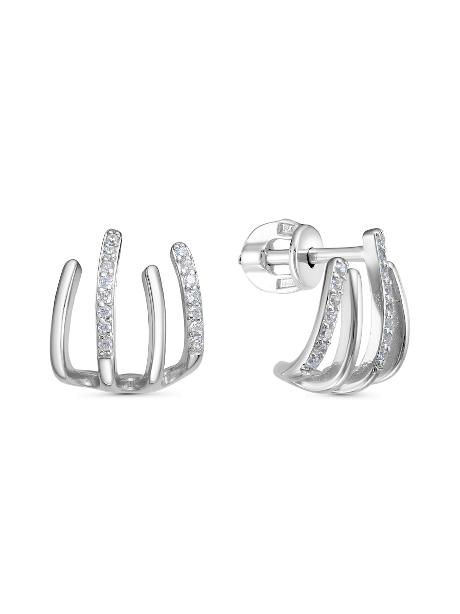 Серьги выполнены из серебра 925 пробы с родиевым покрытием. Характеристики. Вставка 30 недрагоценных бесцветных фианитов 1 мм огранка круг. Высота серьги 12 мм, ширина 11,5 мм. Замок винтовой. Рабочая зона штифта 4,5 мм. Берегите изделие от воздействия влаги, любых спиртосодержащих растворов и жидкостей, а также парфюма. Для ухода и чистки желательно использовать специальные салфетки для серебра. Приятным дополнением к украшению является фирменная упаковка. Значение веса и габаритов в характеристиках являются примерными и могут отличаться от фактических.