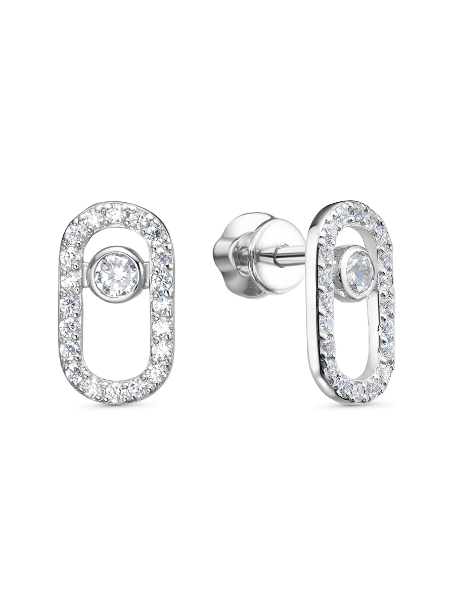 Пусеты с фианитами выполнены из серебра 925 пробы с родиевым покрытием. Характеристики. Вставка 2 недрагоценных бесцветных фианита 3 мм огранка круг, 40 недрагоценных бесцветных фианитов 1,25 мм огранка круг. Высота серьги 12,5мм, ширина 7 мм. Замок винтовой. Рабочая зона штифта 4,5 мм. Берегите изделие от воздействия влаги, любых спиртосодержащих растворов и жидкостей, а также парфюма. Для ухода и чистки желательно использовать специальные салфетки для серебра. Приятным дополнением к ювелирному украшению является фирменная упаковка. Значение веса и габаритов в характеристиках примерные и могут отличаться от фактических.