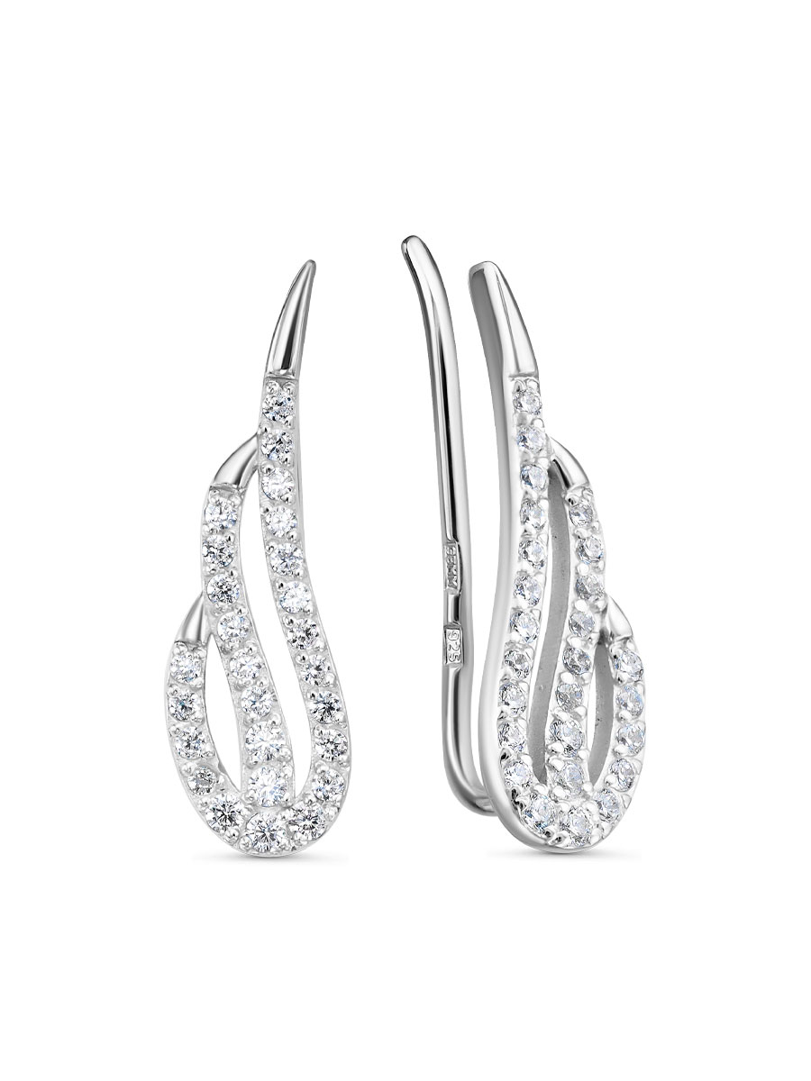 Каффы с фианитами выполнены из серебра 925 пробы с родиевым покрытием. Характеристики. Вставка 10 недрагоценных бесцветных фианитов 1,25 мм огранка круг, 42 недрагоценных бесцветных фианита 1 мм огранка круг. Высота серьги 18,5 мм, ширина 5,7 мм. Рабочая зона штифта 4,5 мм. Длина крючка 18,5 мм. Берегите изделие от воздействия влаги, любых спиртосодержащих растворов и жидкостей, а также парфюма. Для ухода и чистки желательно использовать специальные салфетки для серебра. Приятным дополнением к ювелирному украшению является фирменная упаковка. Значение веса и габаритов в характеристиках примерные и могут отличаться от фактических.