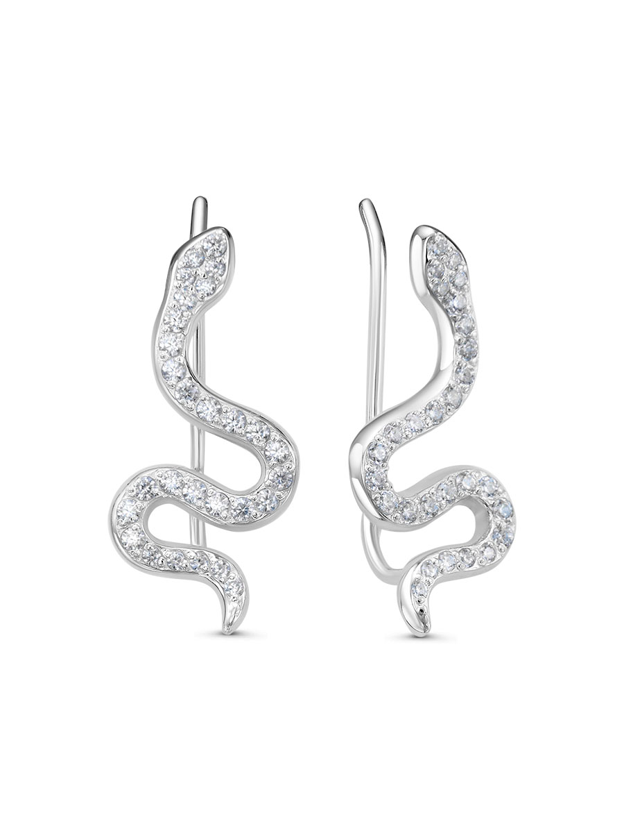 Каффы Змейки с фианитами выполнены из серебра 925 пробы с родиевым покрытием. Характеристики. Вставка 38 недрагоценных бесцветных фианитов 1,25 мм огранка круг, 18 недрагоценных бесцветных фианитов 1 мм огранка круг. Высота серьги 22 мм, ширина 10 мм. Рабочая зона штифта 4,5 мм, длина крючка 21 мм, толщина 0,9 мм. Берегите изделие от воздействия влаги, любых спиртосодержащих растворов и жидкостей, а также парфюма. Для ухода и чистки желательно использовать специальные салфетки для серебра. Приятным дополнением к ювелирному украшению является фирменная упаковка. Значение веса и габаритов в характеристиках примерные и могут отличаться от фактических.