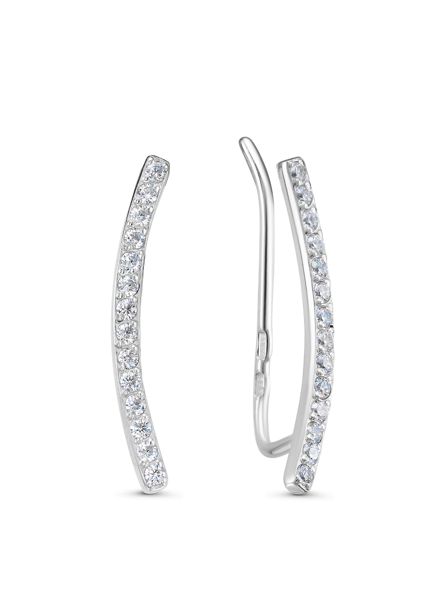 Каффы с фианитами выполнены из серебра 925 пробы с родиевым покрытием. Характеристики. Вставка 28 недрагоценных бесцветных фианитов 1,25 мм огранка круг. Высота серьги 20 мм, ширина 3 мм, глубина 1,5 мм. Рабочая зона штифта 4,5 мм, длина крючка 18 мм. Берегите изделие от воздействия влаги, любых спиртосодержащих растворов и жидкостей, а также парфюма. Для ухода и чистки желательно использовать специальные салфетки для серебра. Приятным дополнением к ювелирному украшению является фирменная упаковка. Значение веса и габаритов в характеристиках примерные и могут отличаться от фактических.