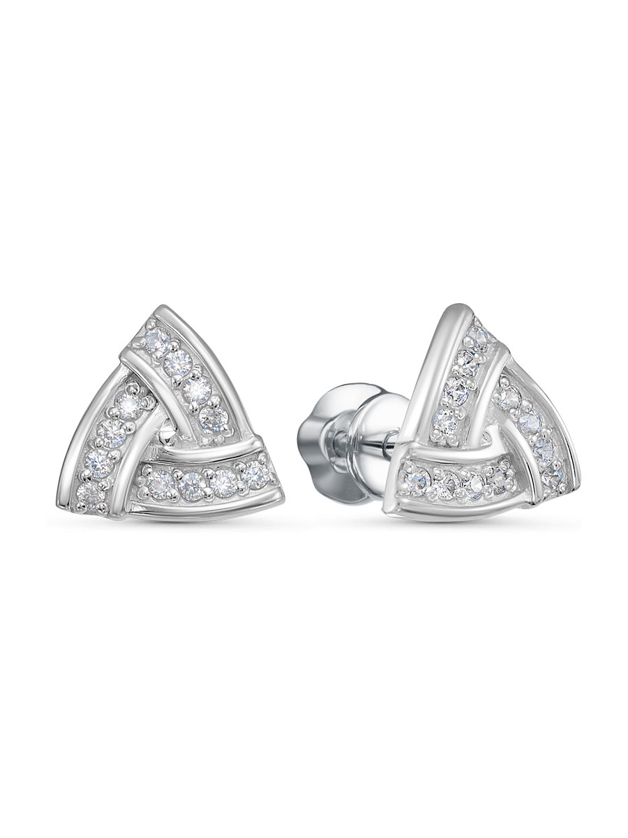 Серьги выполнены из серебра 925 пробы с родиевым покрытием. Характеристики. Вставка 24 недрагоценных бесцветных фианита 1,25 мм огранка круг. Высота треугольника 10,7 мм, длина стороны 10,4 мм. Рабочая зона штифта 5,5 мм. Толщина штифта 1,2 мм. Берегите изделие от воздействия влаги, любых спиртосодержащих растворов и жидкостей, а также парфюма. Для ухода и чистки желательно использовать специальные салфетки для серебра. Приятным дополнением к ювелирному украшению является фирменная упаковка. Значения веса и габаритов в характеристиках примерные и могут отличаться от фактических.