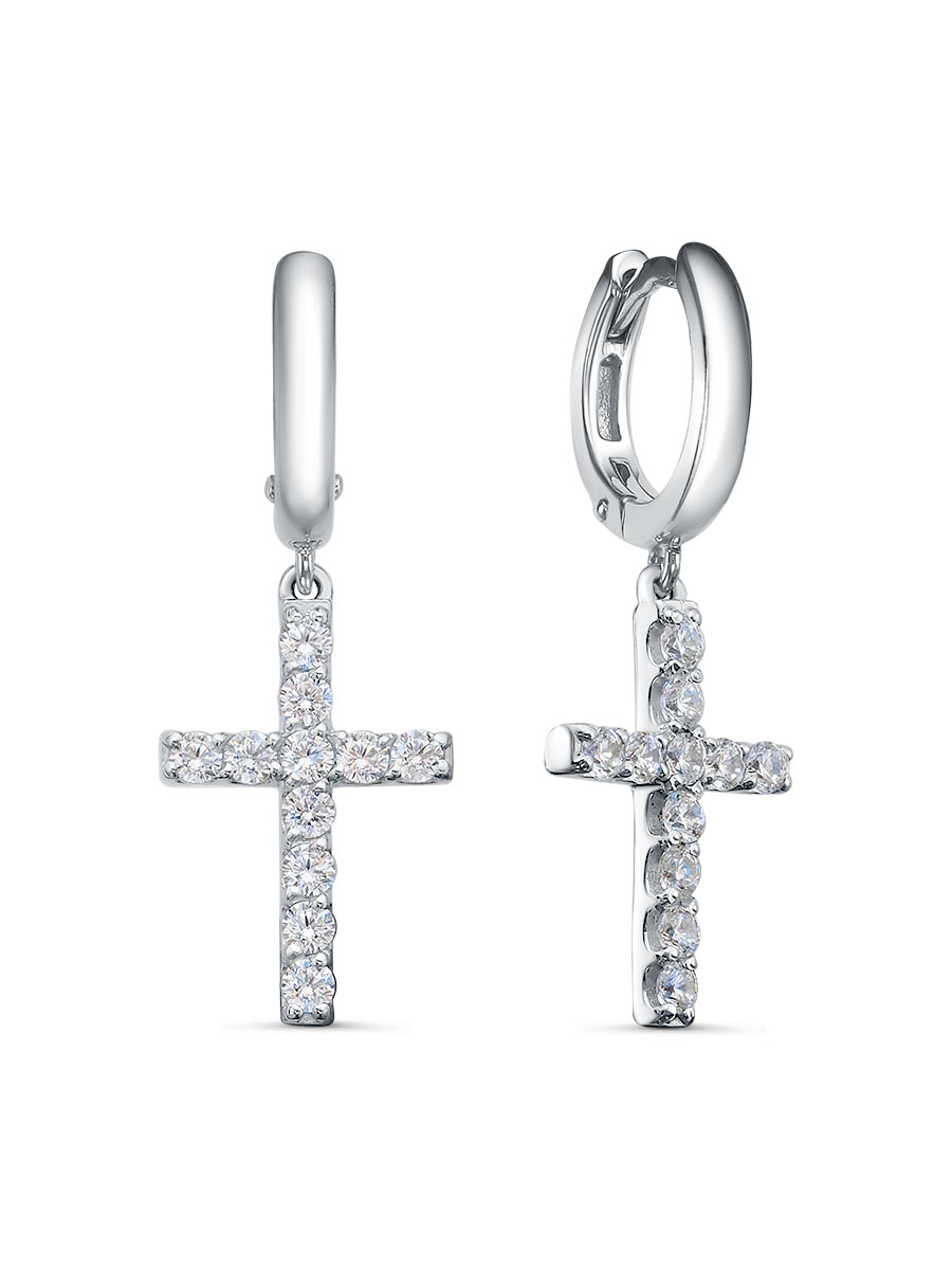 Серьги выполнены из серебра 925 пробы с родиевым покрытием. Характеристики. Вставка 22 недрагоценных бесцветных фианита 2 мм огранка круг. Общая высота серьги 29 мм, ширина верхушки 2 мм. Высота подвески креста 18 мм, ширина 11 мм, глубина 2,2 мм. Рабочая зона штифта 5,8 мм. Толщина штифта 1.2х0,9 мм. Берегите изделие от воздействия влаги, любых спиртосодержащих растворов и жидкостей, а также парфюма. Для ухода и чистки желательно использовать специальные салфетки для серебра. Приятным дополнением к ювелирному украшению является фирменная упаковка. Значения веса и габаритов в характеристиках примерные и могут отличаться от фактических.