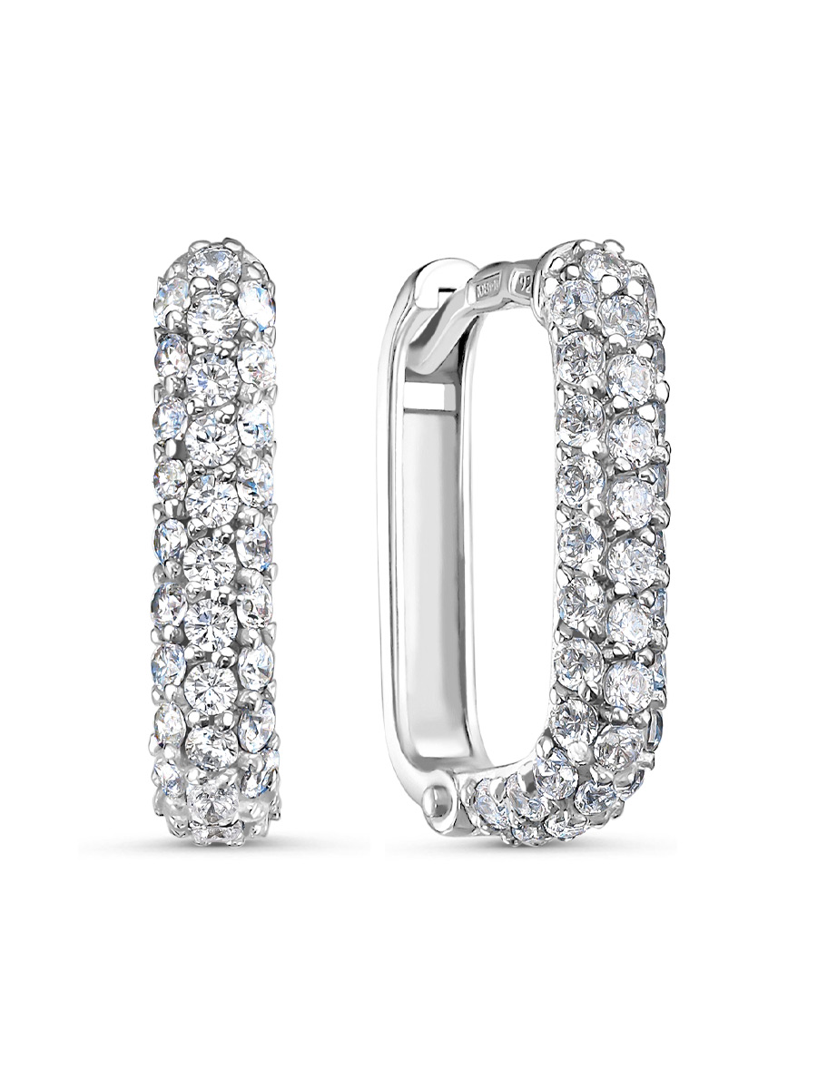 Серьги выполнены из серебра 925 пробы с родиевым покрытием. Характеристики. Вставка 68 недрагоценных бесцветных фианитов 1,5 мм огранка круг. Высота серьги 17,3 мм, ширина 3,8 мм, глубина 12,8 мм. Замок английский. Рабочая зона штифта 6,3 мм, размер занижения штифта 1 мм. Толщина штифта 1,1х0,9 мм. Берегите изделие от воздействия влаги, любых спиртосодержащих растворов и жидкостей, а также парфюма. Для ухода и чистки желательно использовать специальные салфетки для серебра. Приятным дополнением к ювелирному украшению является фирменная упаковка. Значения веса и габаритов в характеристиках примерные и могут отличаться от фактических.