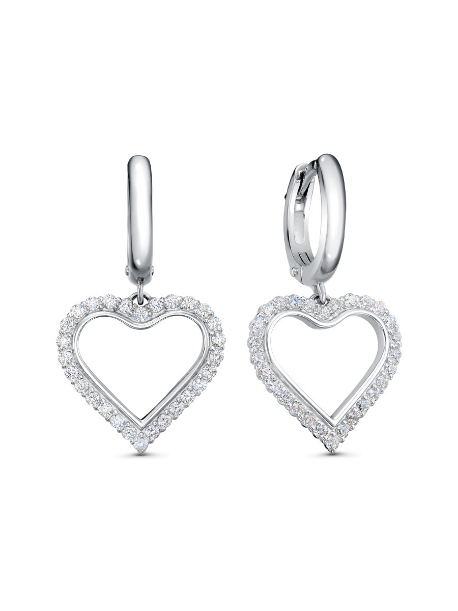 Серьги выполнены из серебра 925 пробы с родиевым покрытием. Характеристики. Вставка 56 недрагоценных бесцветных фианитов 1,25 мм огранка круг. Общая высота серьги 26 мм, ширина верхней части 2 мм. Высота подвески 14 мм, ширина 15 мм. Замок английский. Рабочая зона штифта 5,7 мм, размер занижения штифта 0,5 мм. Берегите изделие от воздействия влаги, любых спиртосодержащих растворов и жидкостей, а также парфюма. Для ухода и чистки желательно использовать специальные салфетки для серебра. Приятным дополнением к ювелирному украшению является фирменная упаковка. Значения веса и габаритов в характеристиках примерные и могут отличаться от фактических.