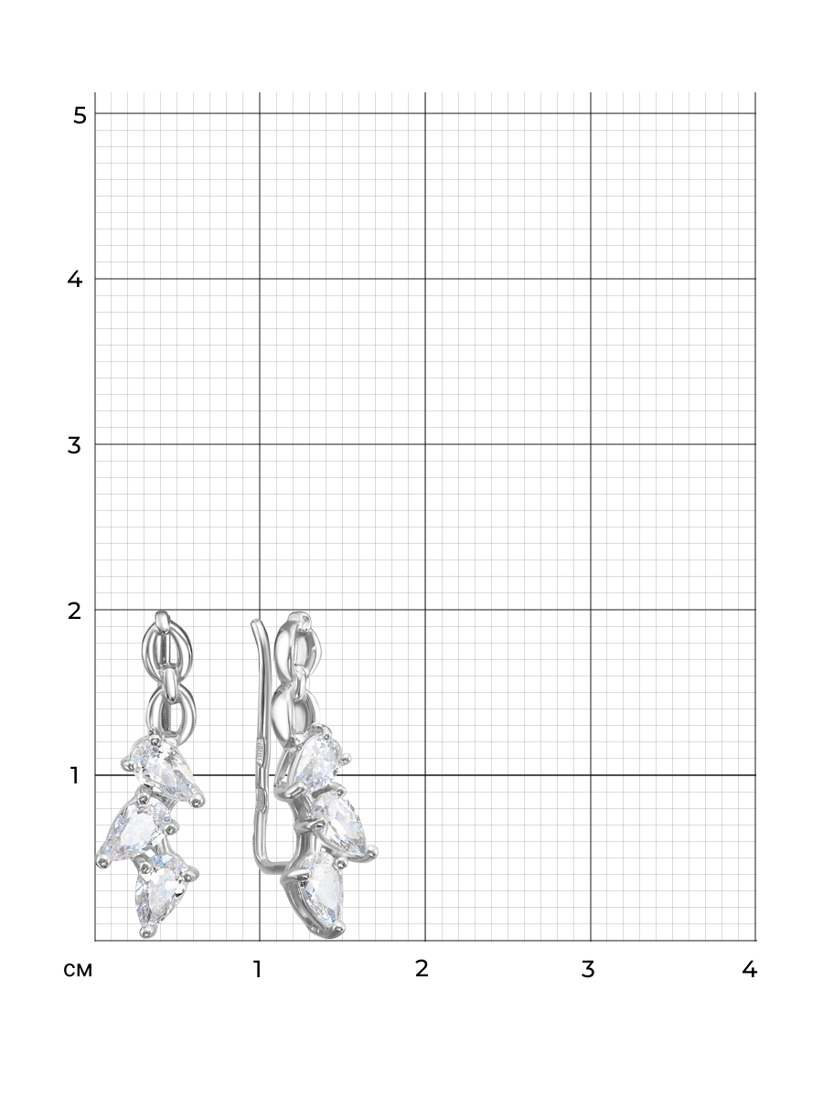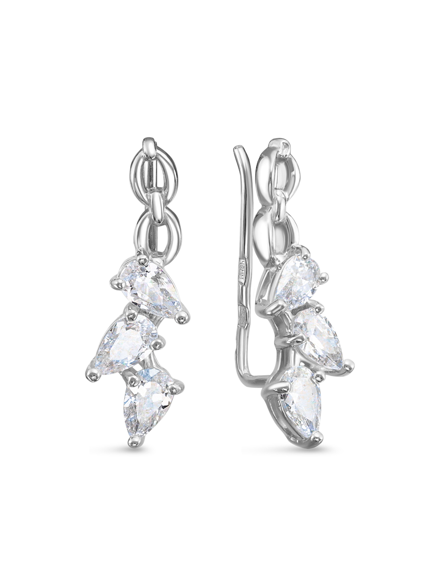 Каффы выполнены из серебра 925 пробы с родиевым покрытием. Характеристики. Вставка 6 бесцветных недрагоценных фианитов 5х3мм огранка груша. Высота серьги 20мм, ширина 6,5мм. Рабочая зона штифта 4,5мм, длина крючка 19мм, толщина штифта 0,8мм. Берегите изделие от воздействия влаги, любых спиртосодержащих растворов и жидкостей, а также парфюма. Для ухода и чистки желательно использовать специальные салфетки для серебра. Приятным дополнением к украшению является фирменная упаковка. Значение веса и габаритов в характеристиках являются примерными и могут отличаться от фактических.