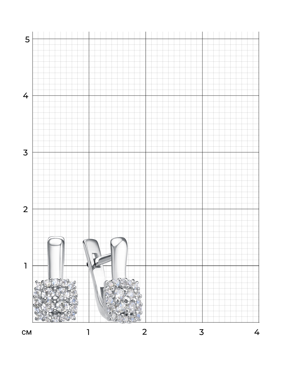 Серьги выполнены из серебра 925 пробы с родиевым покрытием. Характеристики. Вставка 8 недрагоценных бесцветных фианитов 2мм огранка круг, 32 недрагоценных бесцветных фианита 1,25мм огранка круг. Высота серьги 14,8мм, ширина 7,8мм. Замок английский. Рабочая зона штифта 6,5мм, размер занижения штифта 2мм. Отличным дополнением к серьгам будут кольцо арт. 1-08-345-12р и подвеска арт. 3-08-345-12р. Берегите изделие от воздействия влаги, любых спиртосодержащих растворов и жидкостей, а также парфюма. Для ухода и чистки желательно использовать специальные салфетки для серебра. Приятным дополнением к ювелирному украшению является фирменная упаковка. Значение веса и габаритов в характеристиках примерные и могут отличаться от фактических.